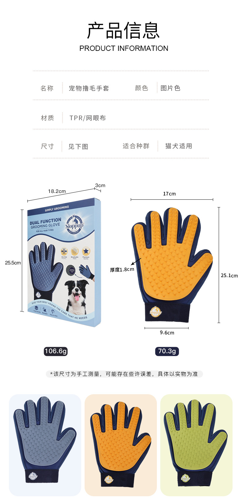 애완 동물 털 손수건, 고양이와 개 목욕 마사지 장갑, 고양이 털 제거 장갑, 애완 동물 용품 도매스토어 가기