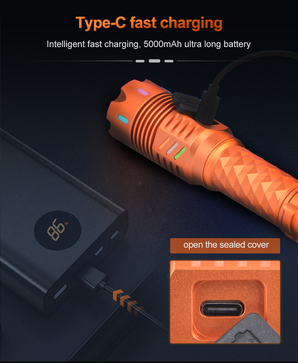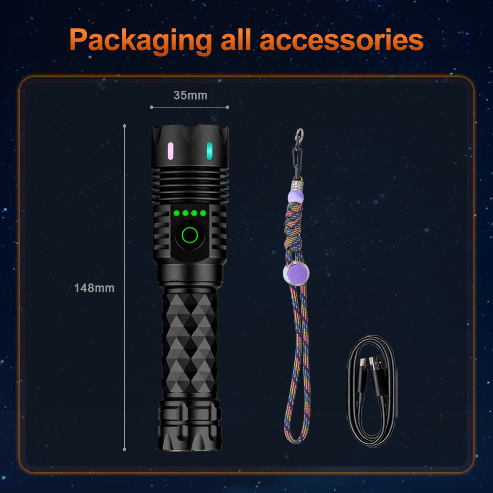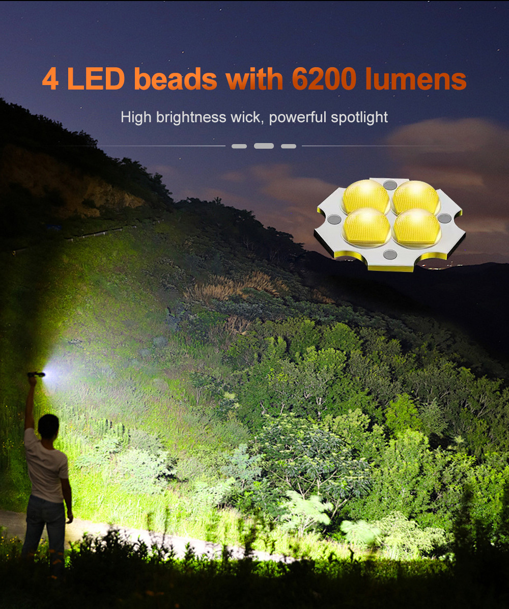 국경을 넘는 강력한 손전등, 초강력 55W 야외 조명 LED 램프, 충전식 휴대용 장거리 방수 6000LM
