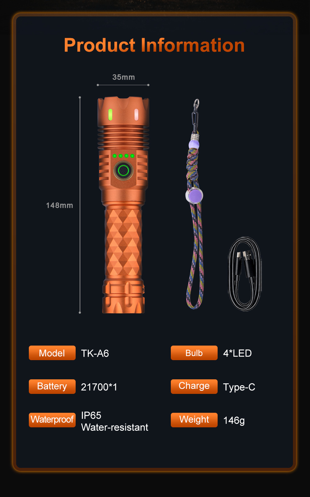 • TKA6 손전등 검정색(색상 상자) + 21700 배터리
