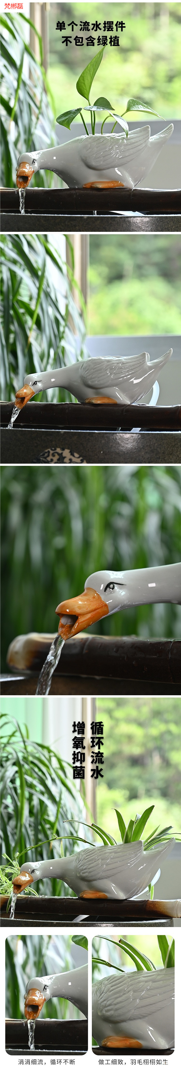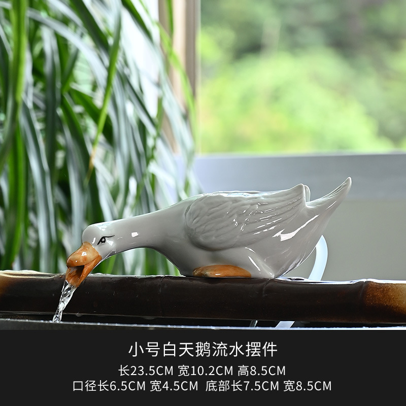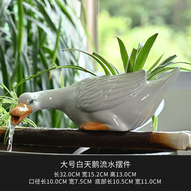 고대 방식의 수조 순환 여과 액세서리, 안뜰 실내 산소화 흰색 오리 세라믹 항아리 물 장식품