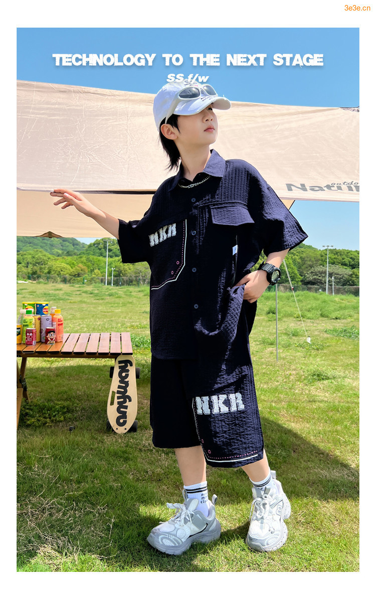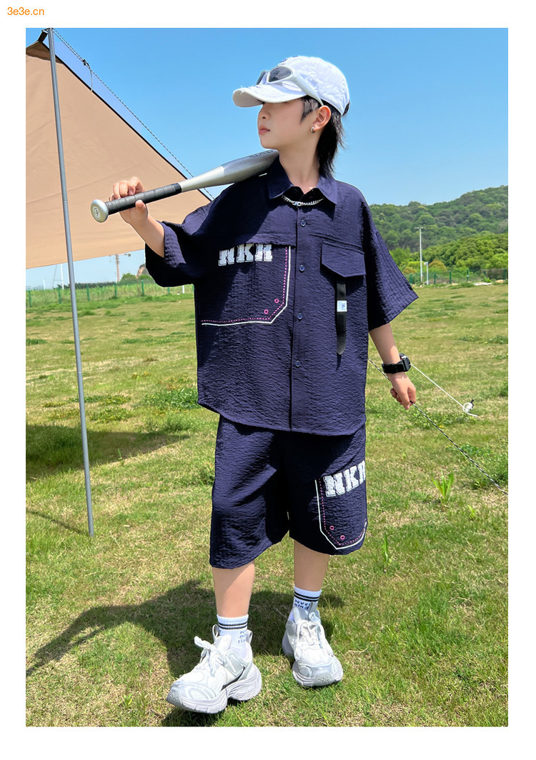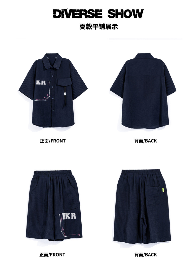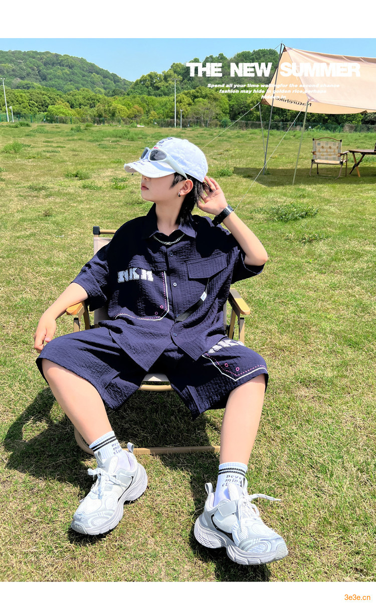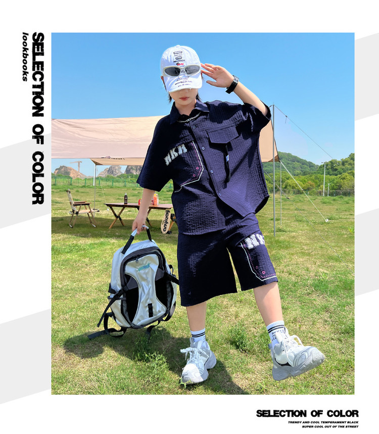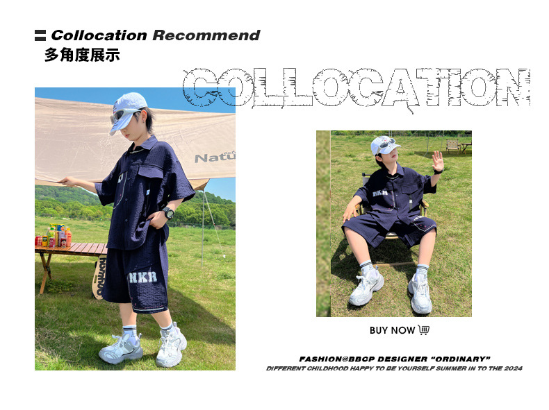 소년 반팔 셔츠 정장 여름 한국 스타일 큰 어린이 패션 작업복 스타일 캐주얼 루즈 소년 투피스 세트 Dropshipping