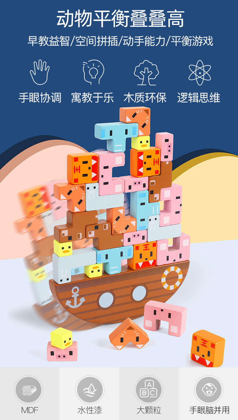 나무 스태킹 높이 교육 장난감 동물 균형 스태킹 빌딩 블록 게임 균형 보트 어린이 교육 장난감