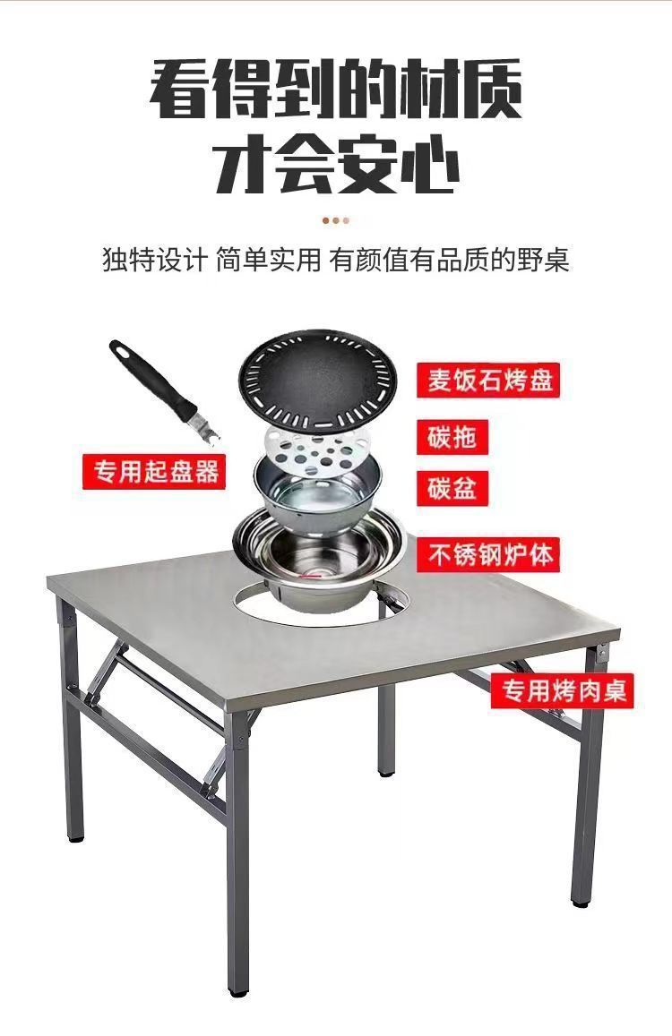 스테인레스 스틸 노점 바베큐 테이블 상업 노점 야시장 가정용 야외 접이식 바베큐 테이블 한국식 전골 테이블스토어 가기