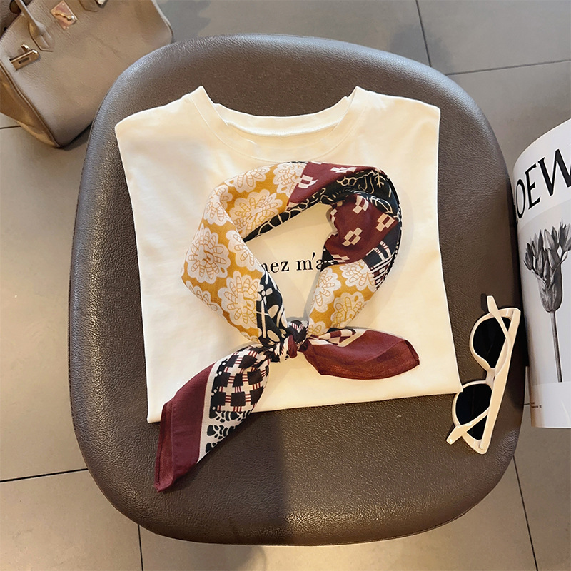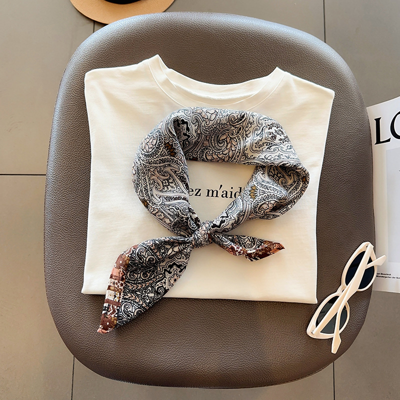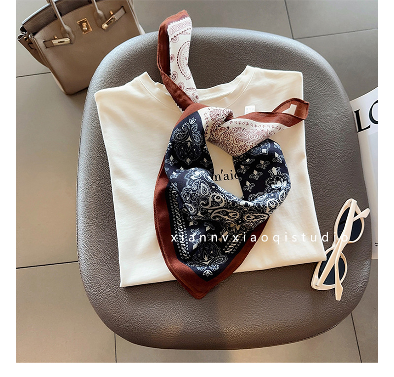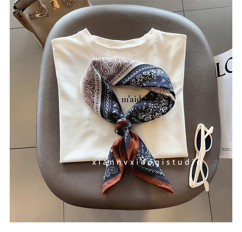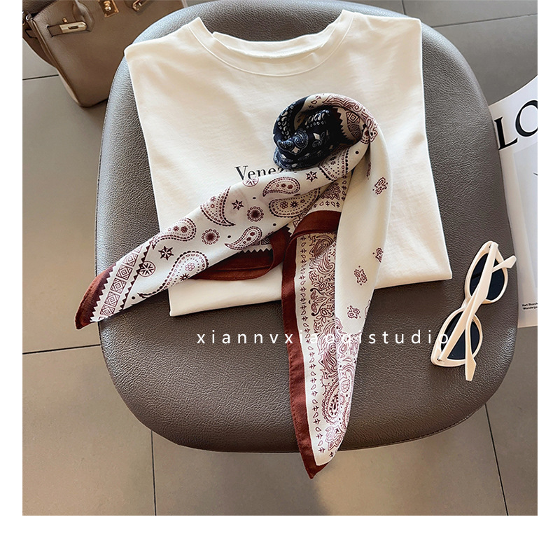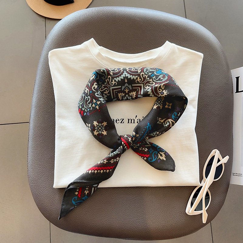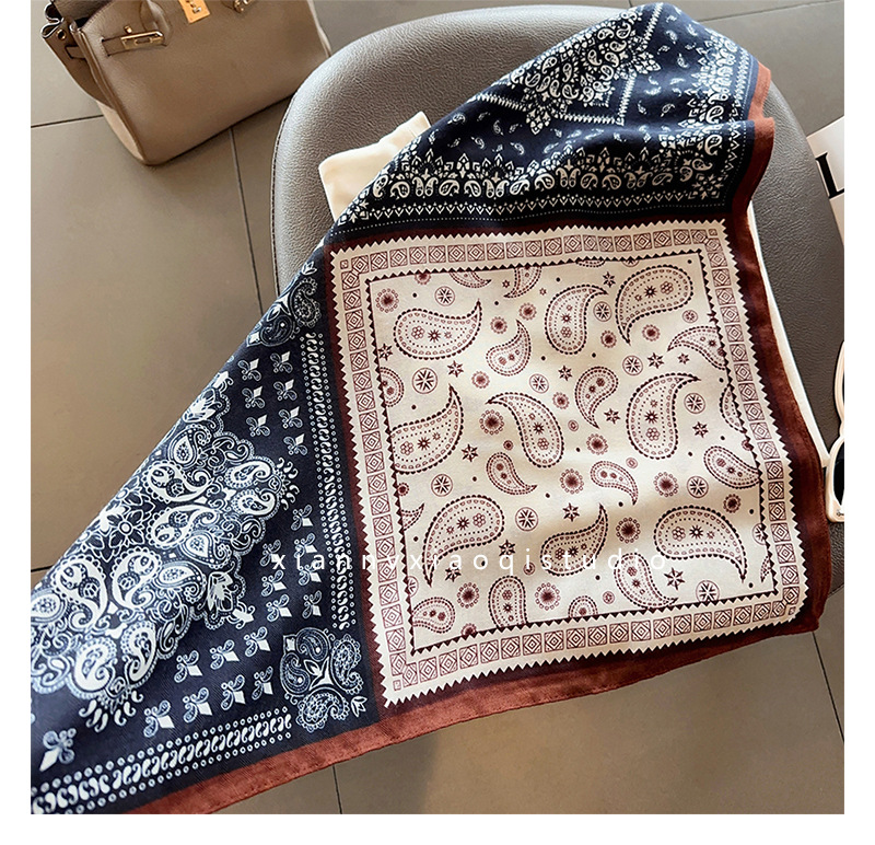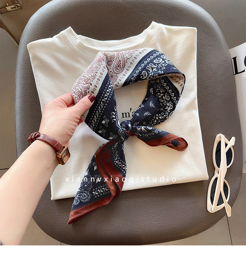 캐슈 플라워 스플라이스 코튼 린넨 스몰 스퀘어 스카프 여성용 봄 여름 스타일 셔츠 슈트 스카프 패셔너블한 허리 스카프