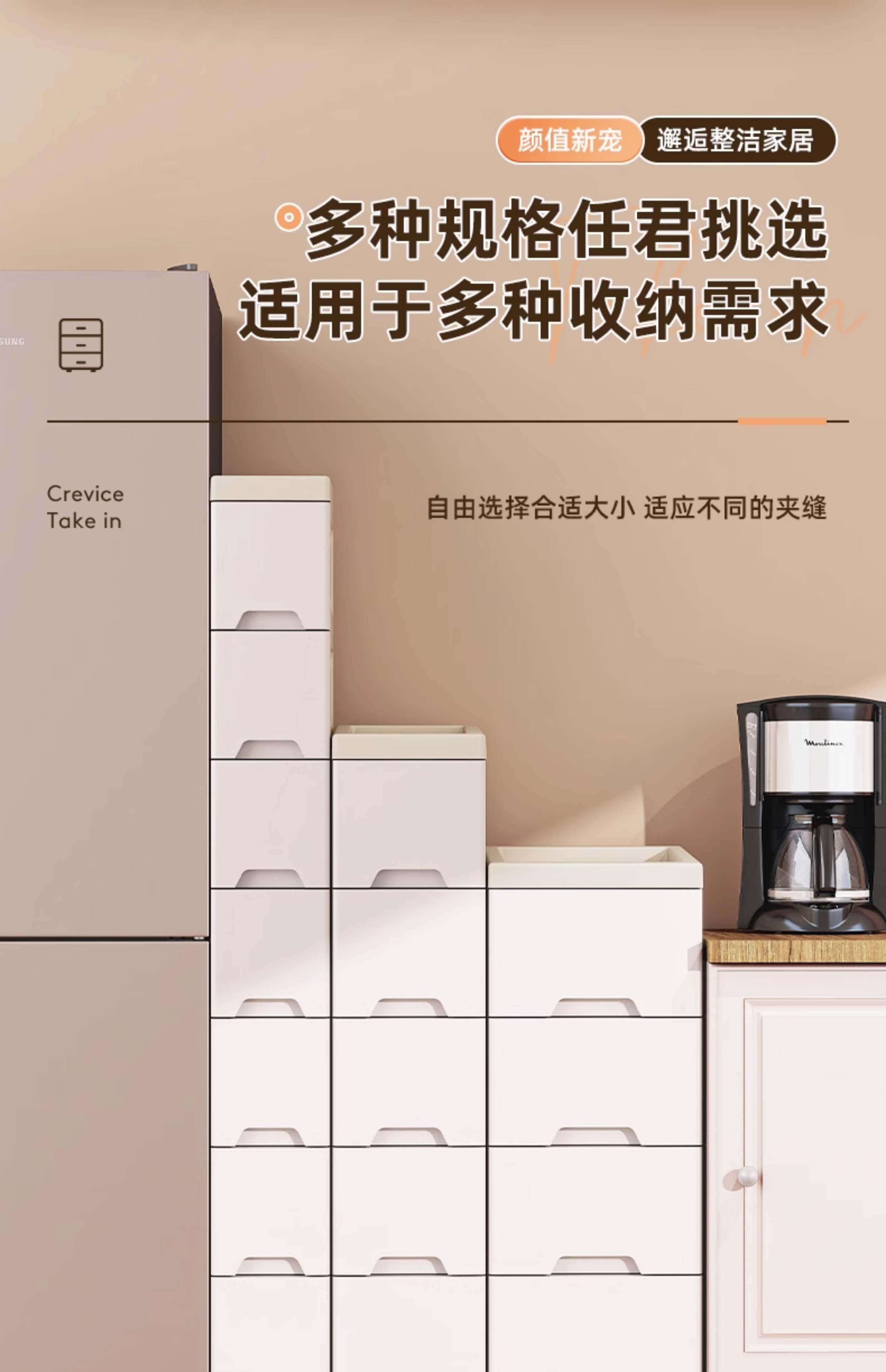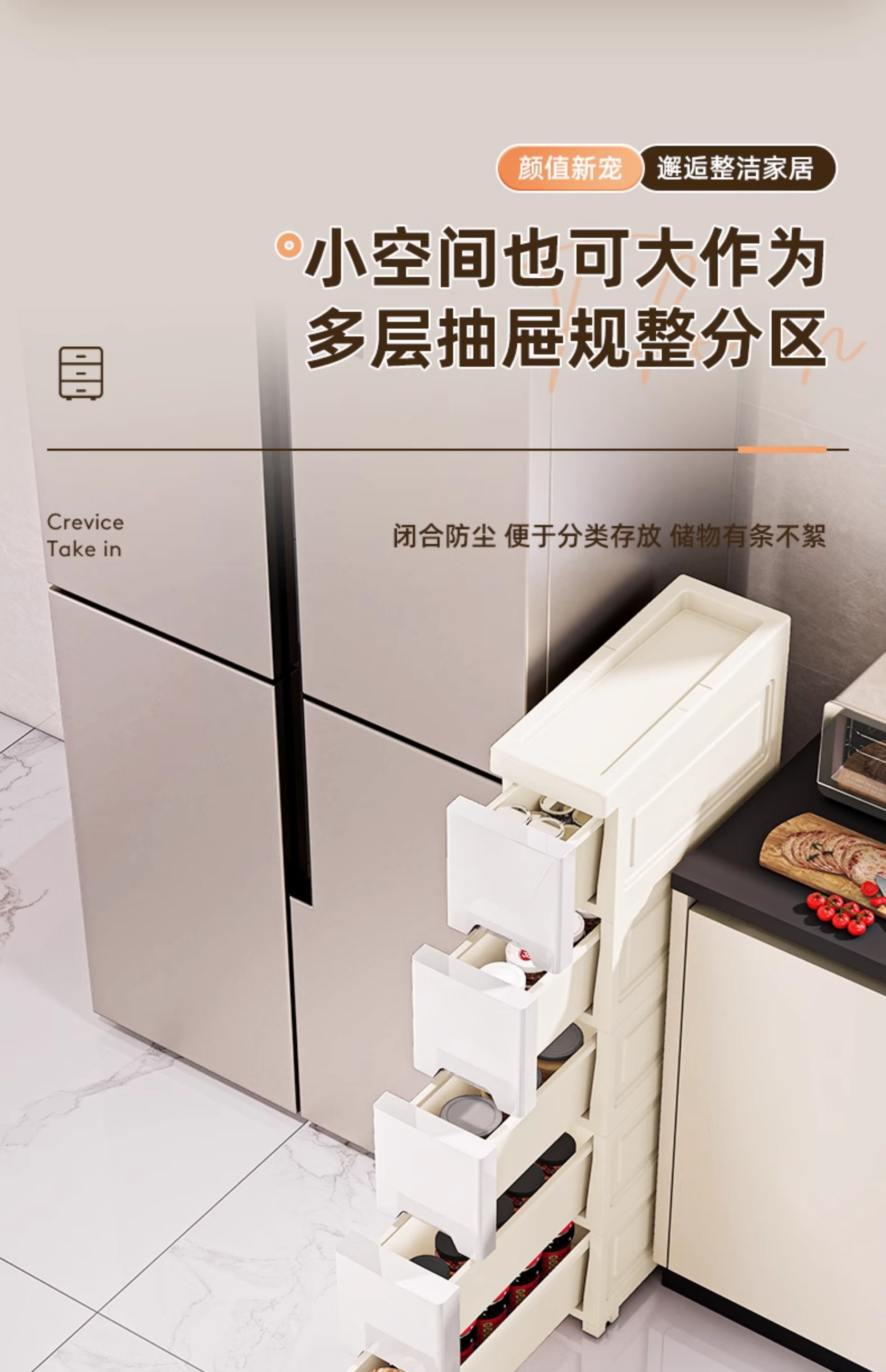 ✅ 14//18cm 주방 틈새 수납 선반 서랍 가정용 다층 바닥 조리대 캐비닛 좁은 틈새 수납