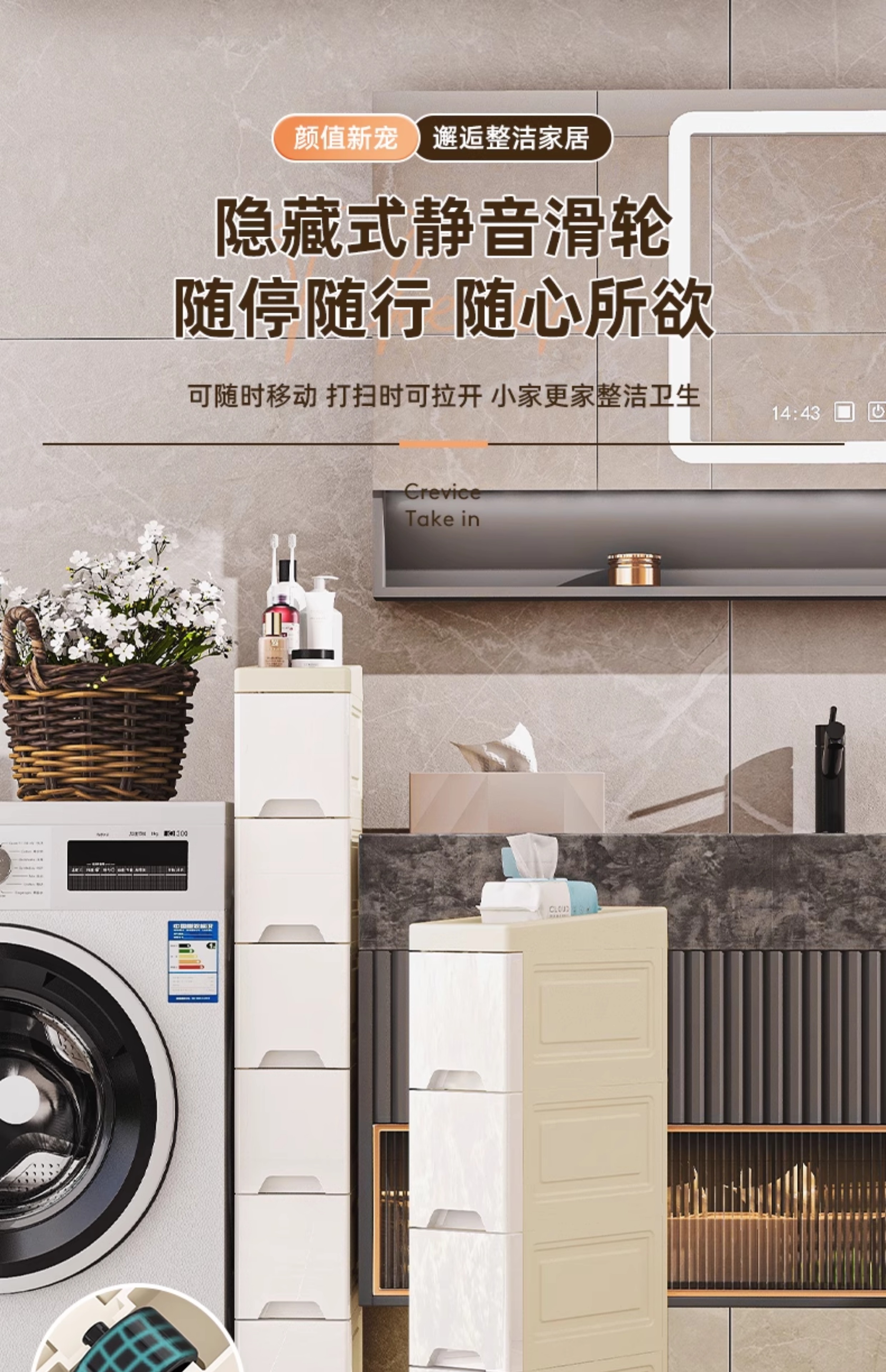 ✅ 14//18cm 주방 틈새 수납 선반 서랍 가정용 다층 바닥 조리대 캐비닛 좁은 틈새 수납스토어 가기
