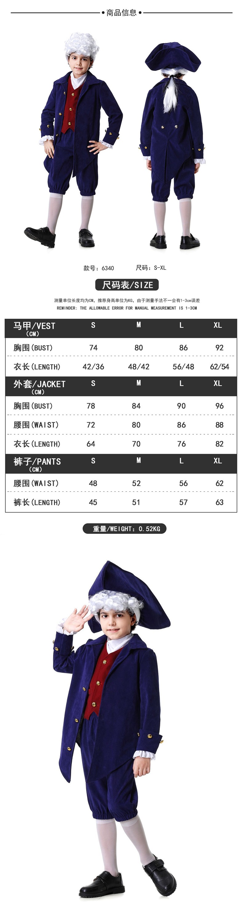 국경 간 할로윈 복고풍 변호사 어린이 슈트 코스프레 워싱턴 대통령 쇼 코스프레 의상스토어 가기