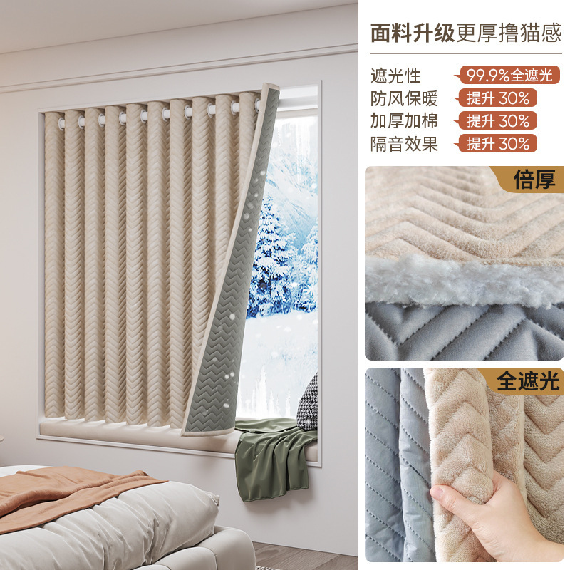 침실 차광용 전문 도로 방음 커튼 2025 새로운 스타일의 플로팅 창 방풍 및 방한 면 단열 커튼