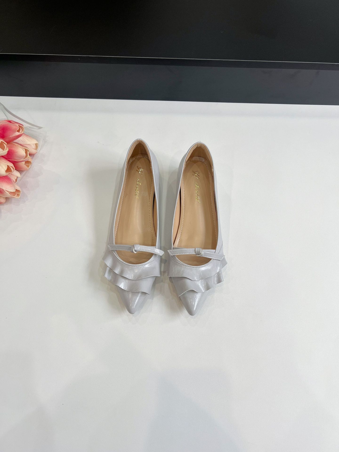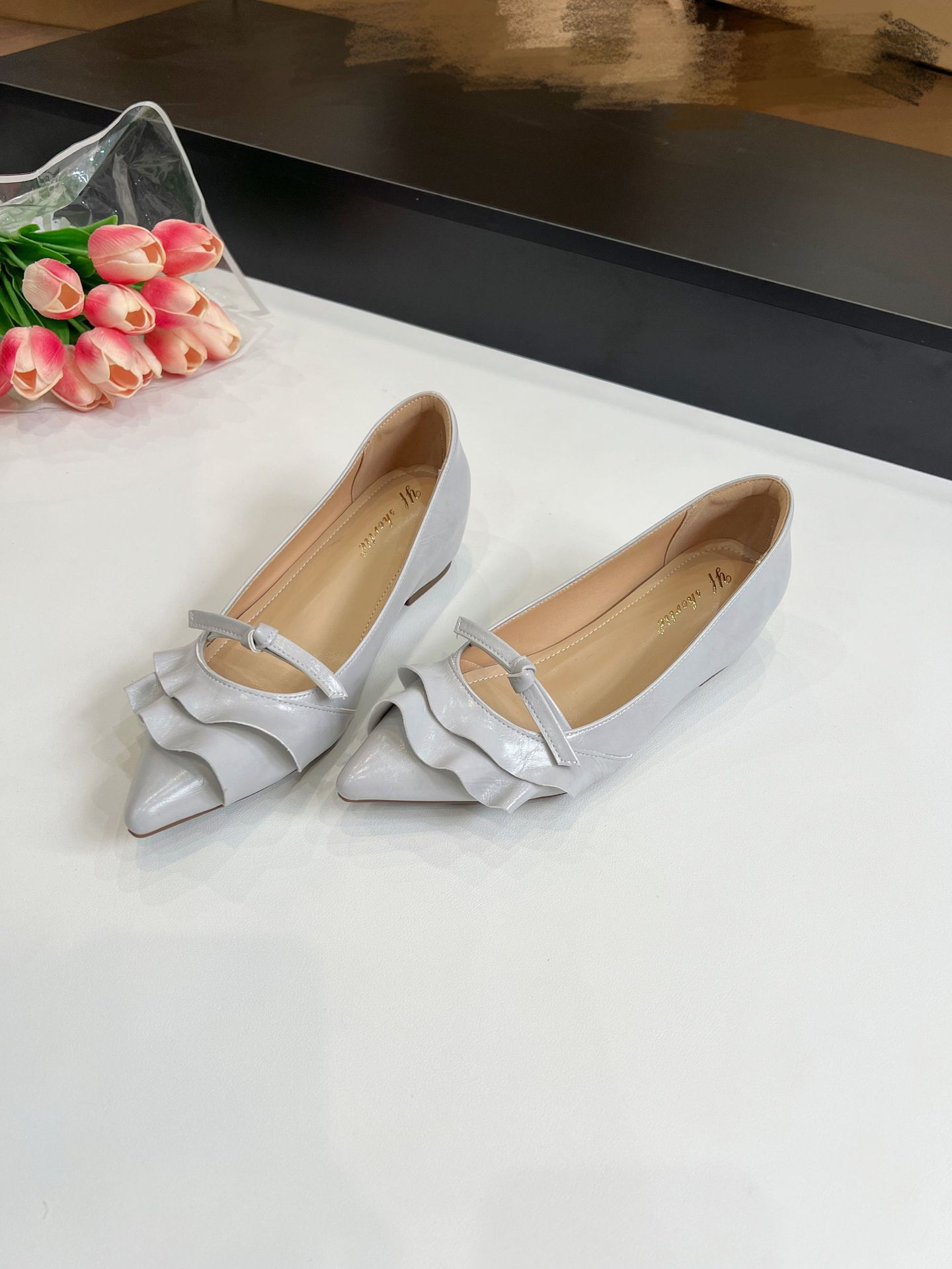 내부 높이가 증가한 여성화, 연잎 디자인, 뾰족한 앞코 슬립온 슈즈, 2025년 여름 신상 프렌치 스타일 스커트 이브닝 슈즈스토어 가기