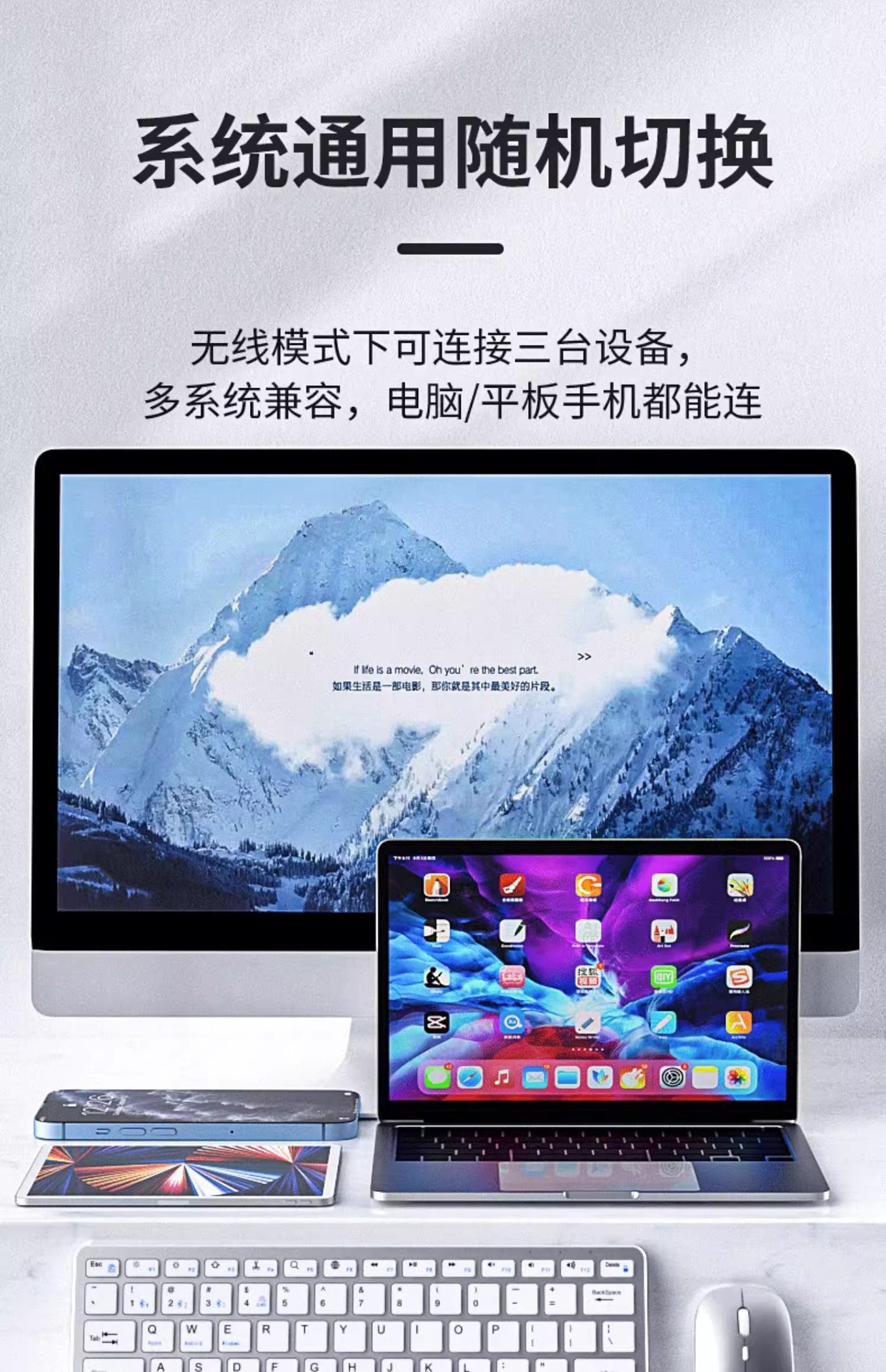 필름 듀얼 모드 매직 무선 블루투스 키보드 마우스, 애플 휴대폰 및 태블릿 컴퓨터용, 충전식 소형 모델