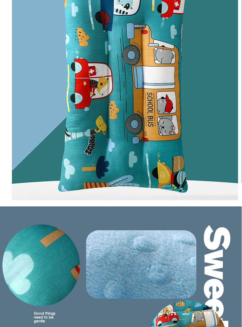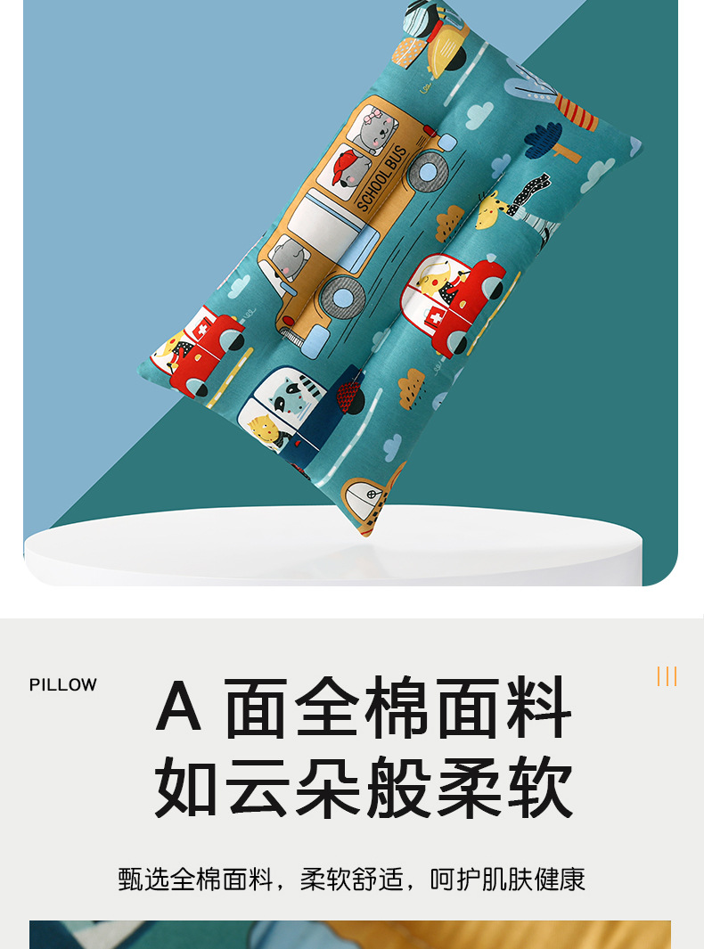 순면 콩 베개 유치원 귀여운 프린트 낮잠 베개 부드럽고 피부 친화적이며 통기성이 있으며 모든 계절에 적합하며 기계 세탁 가능