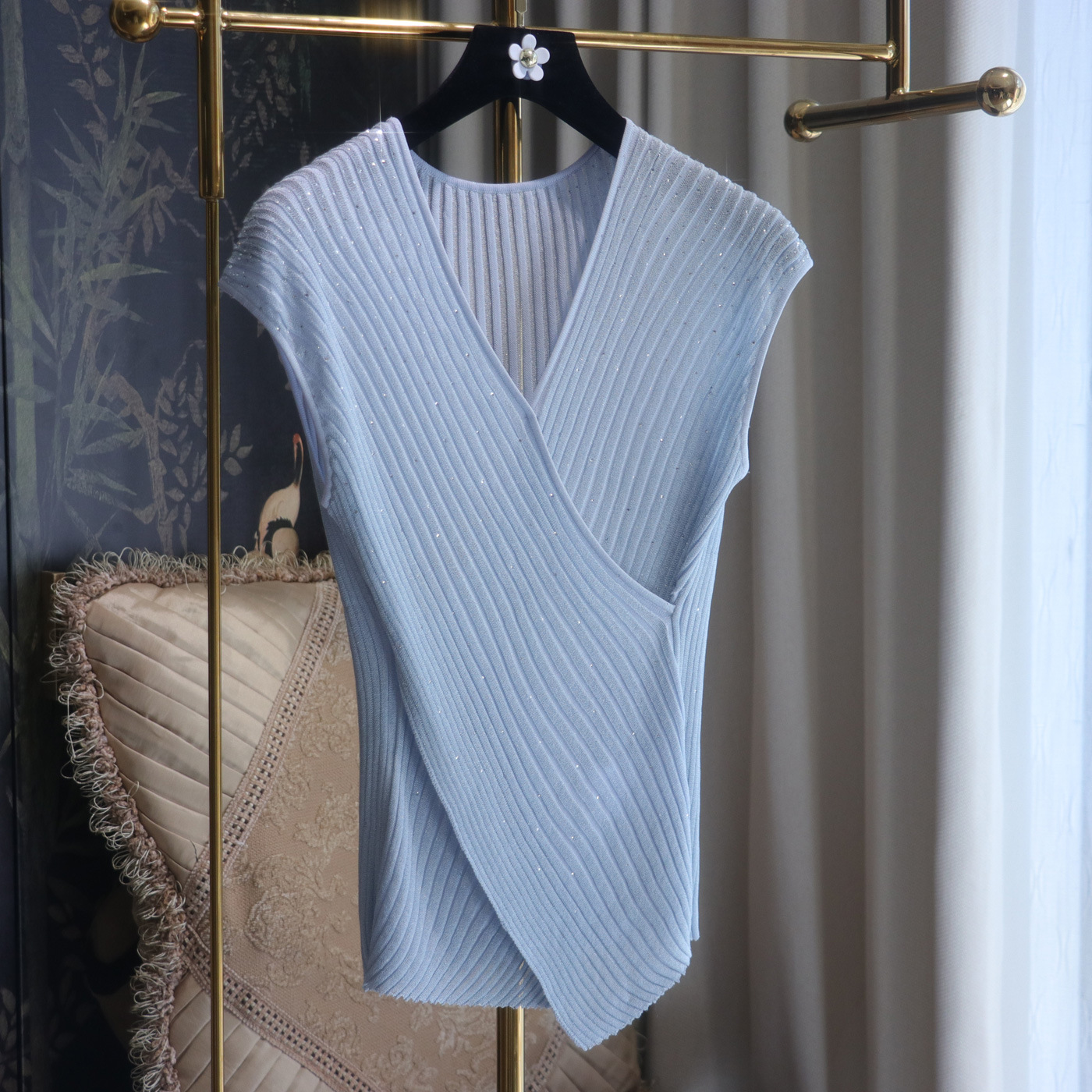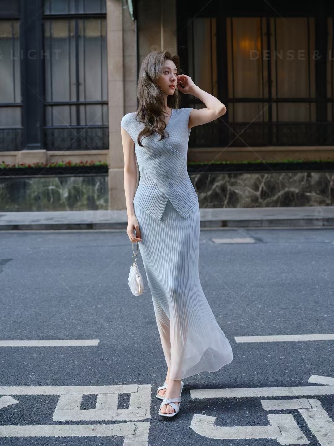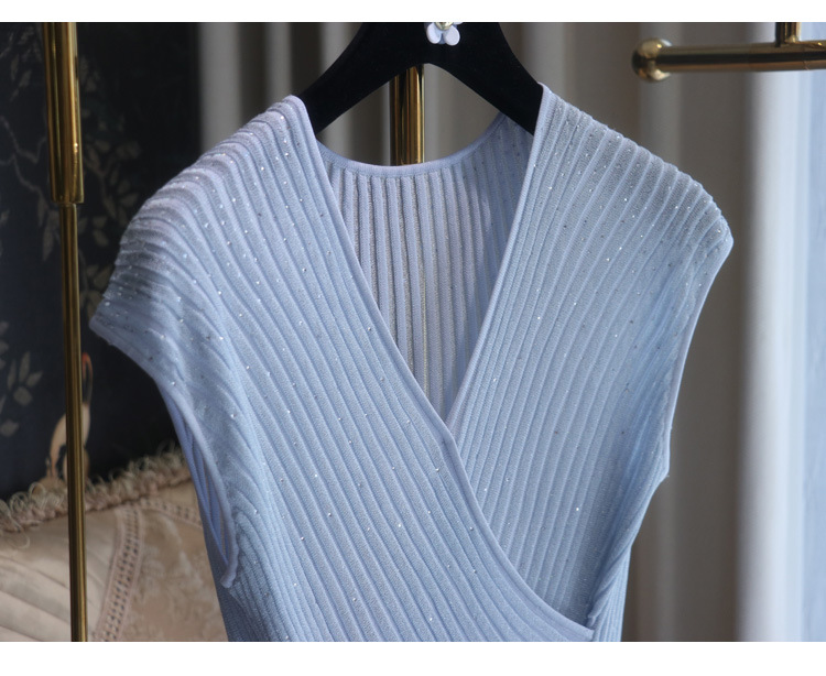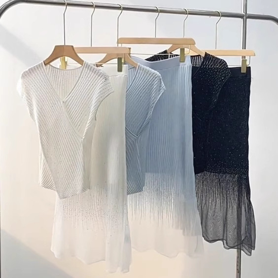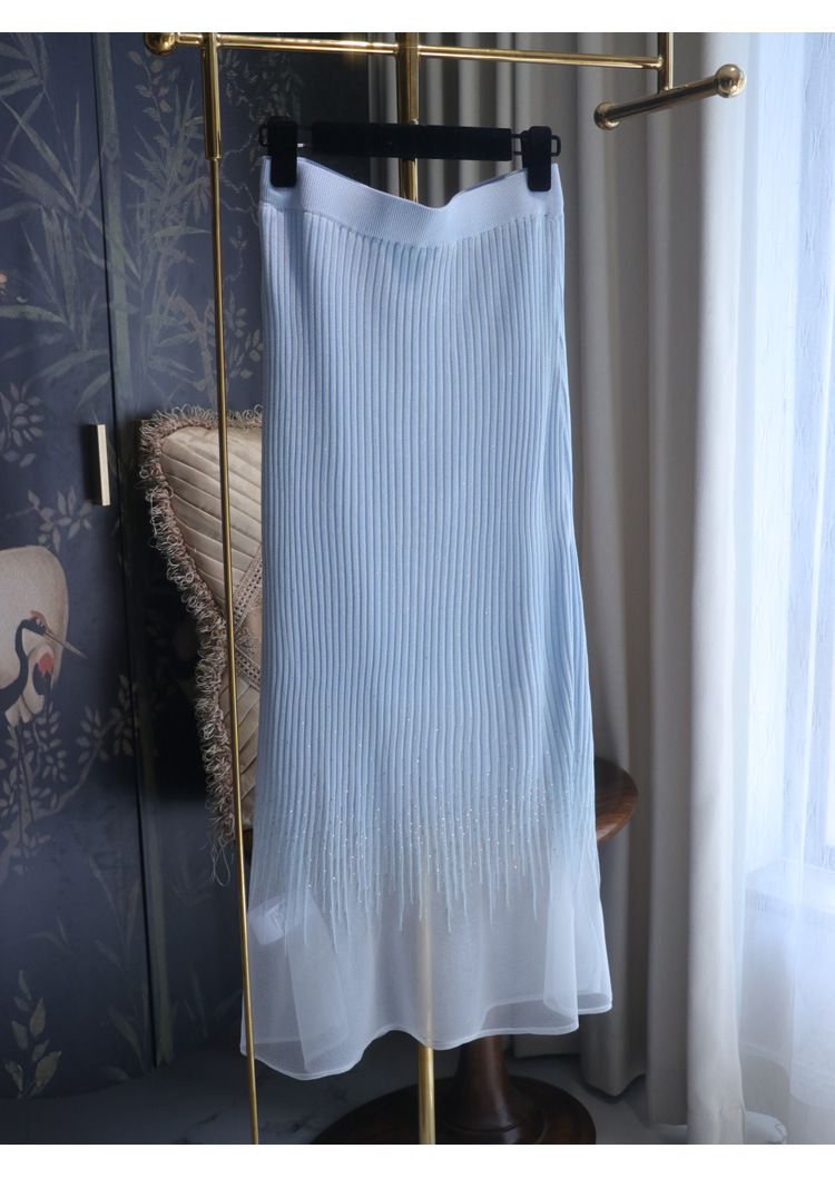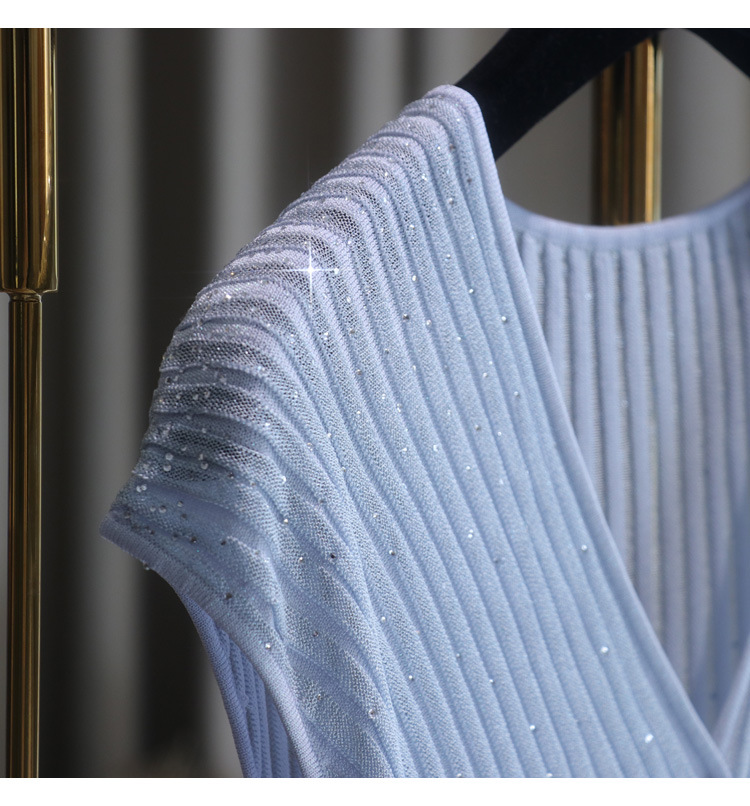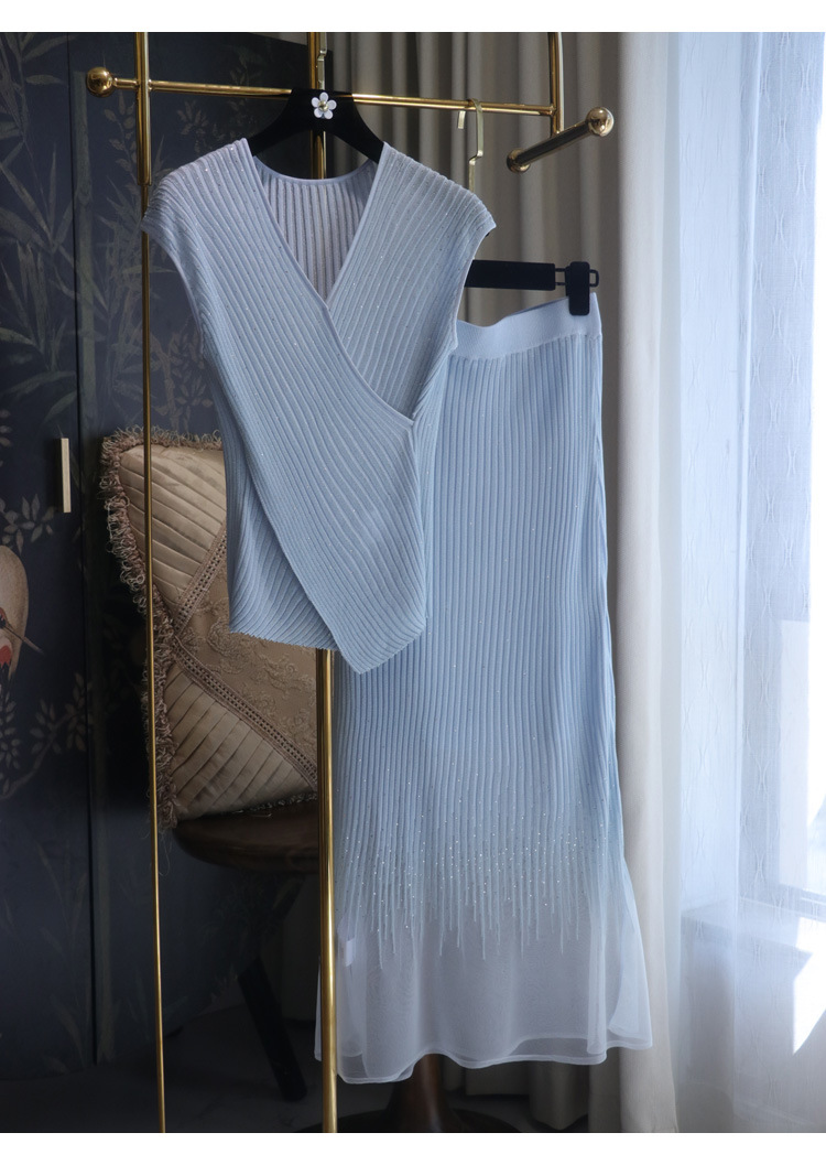 풀 다이아몬드 디자인 크로스 슬리밍 반짝반짝 뜨거운 다이아몬드 우아한 니트 반팔 + 스커트스토어 가기