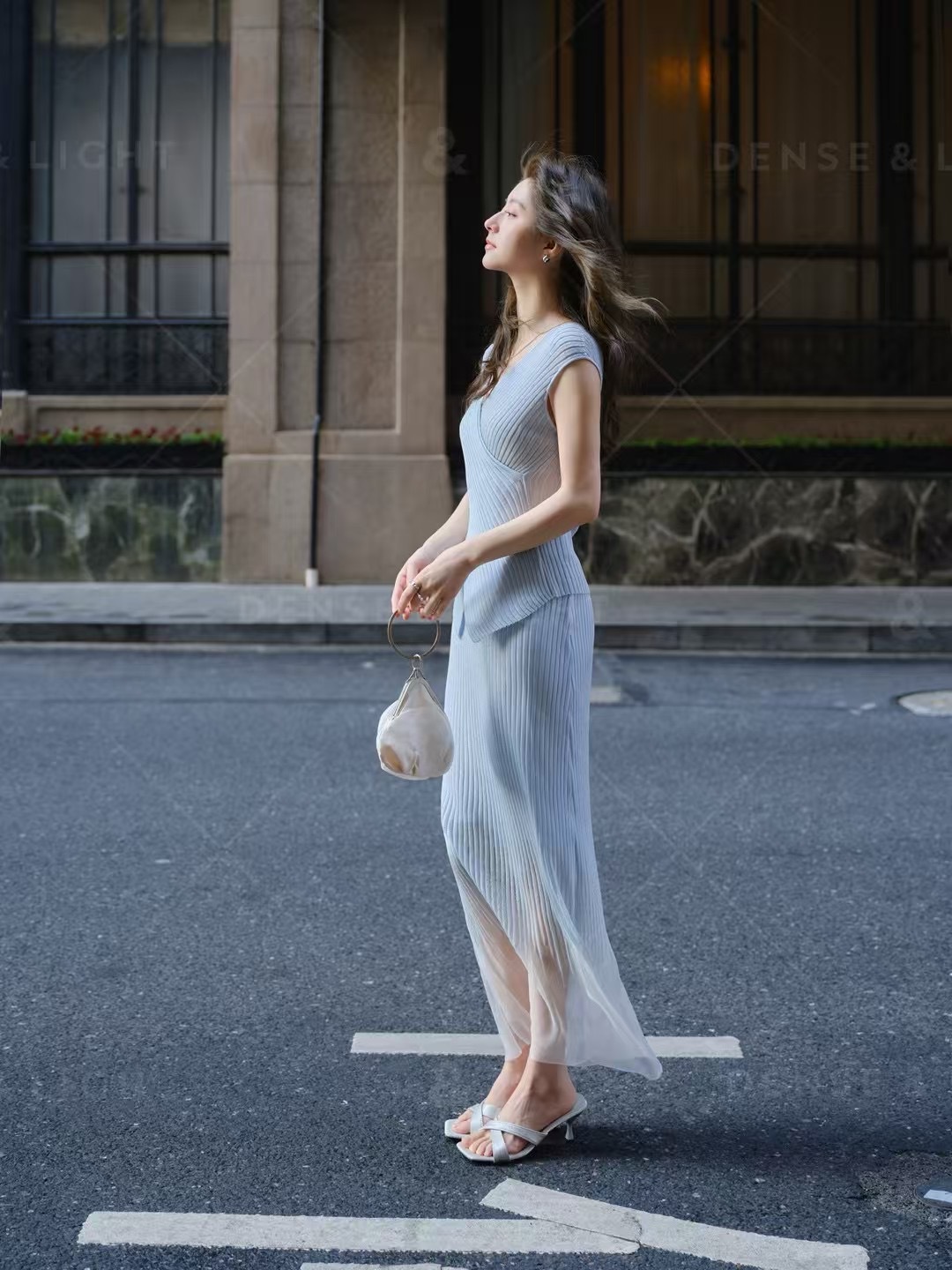 • 하늘색 스커트