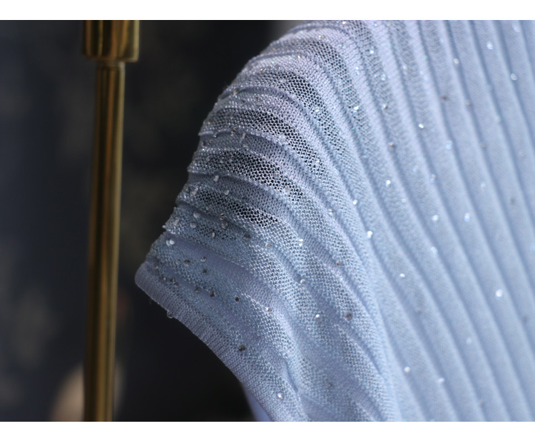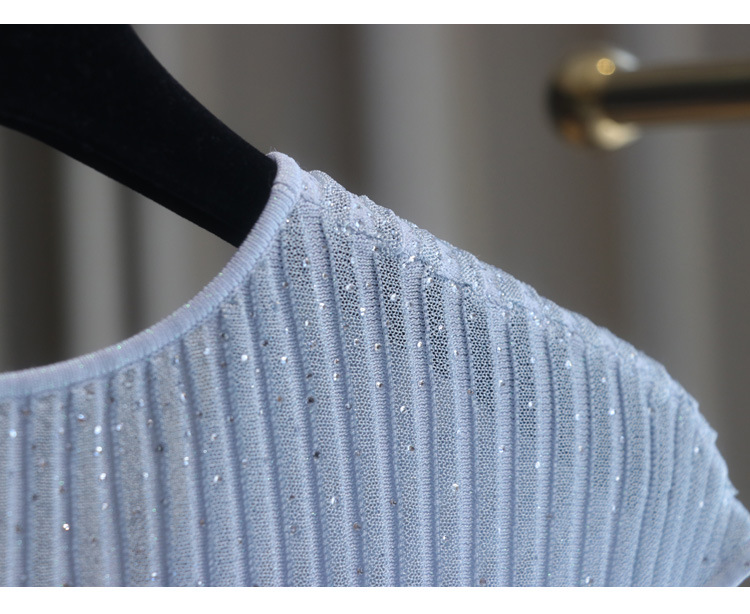 풀 다이아몬드 디자인 크로스 슬리밍 반짝반짝 뜨거운 다이아몬드 우아한 니트 반팔 + 스커트