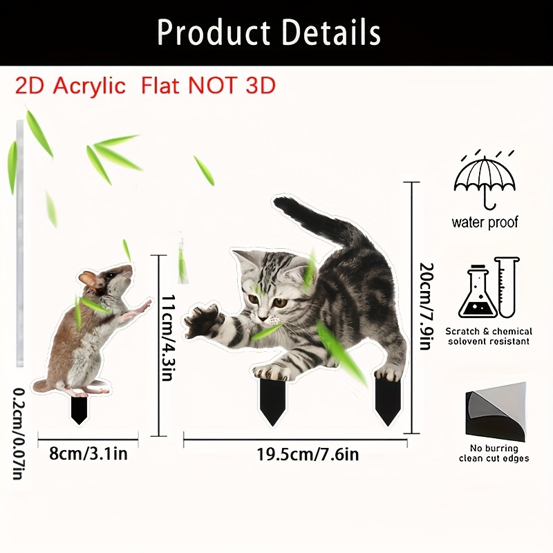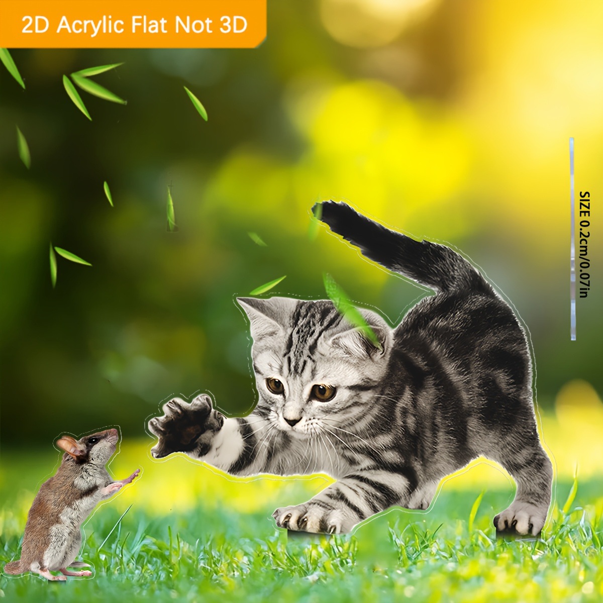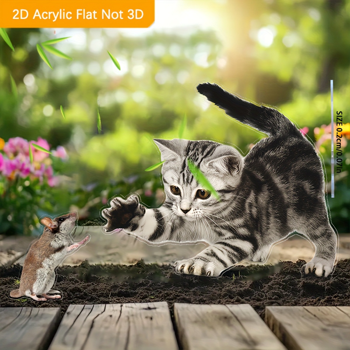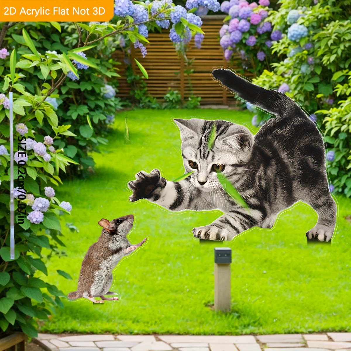 2D 평면, 2pcs 놀이 고양이와 쥐 정원 말뚝 아크릴 야외 장식, 정원에 적합스토어 가기