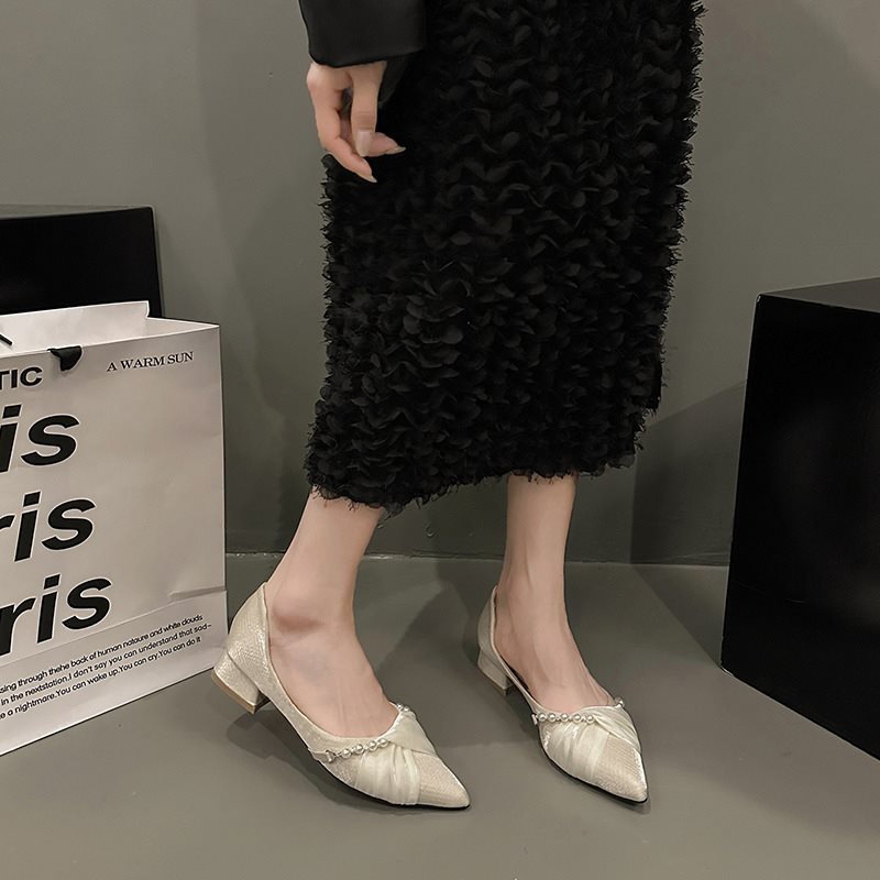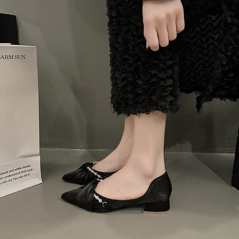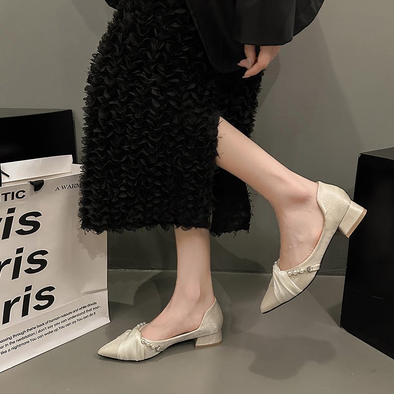 여성스커트와 요정스러운 봄여름 이브닝슈즈를 위한 프렌치 로우풍 포인티드 토 슈즈 2025 신상 슈즈스토어 가기