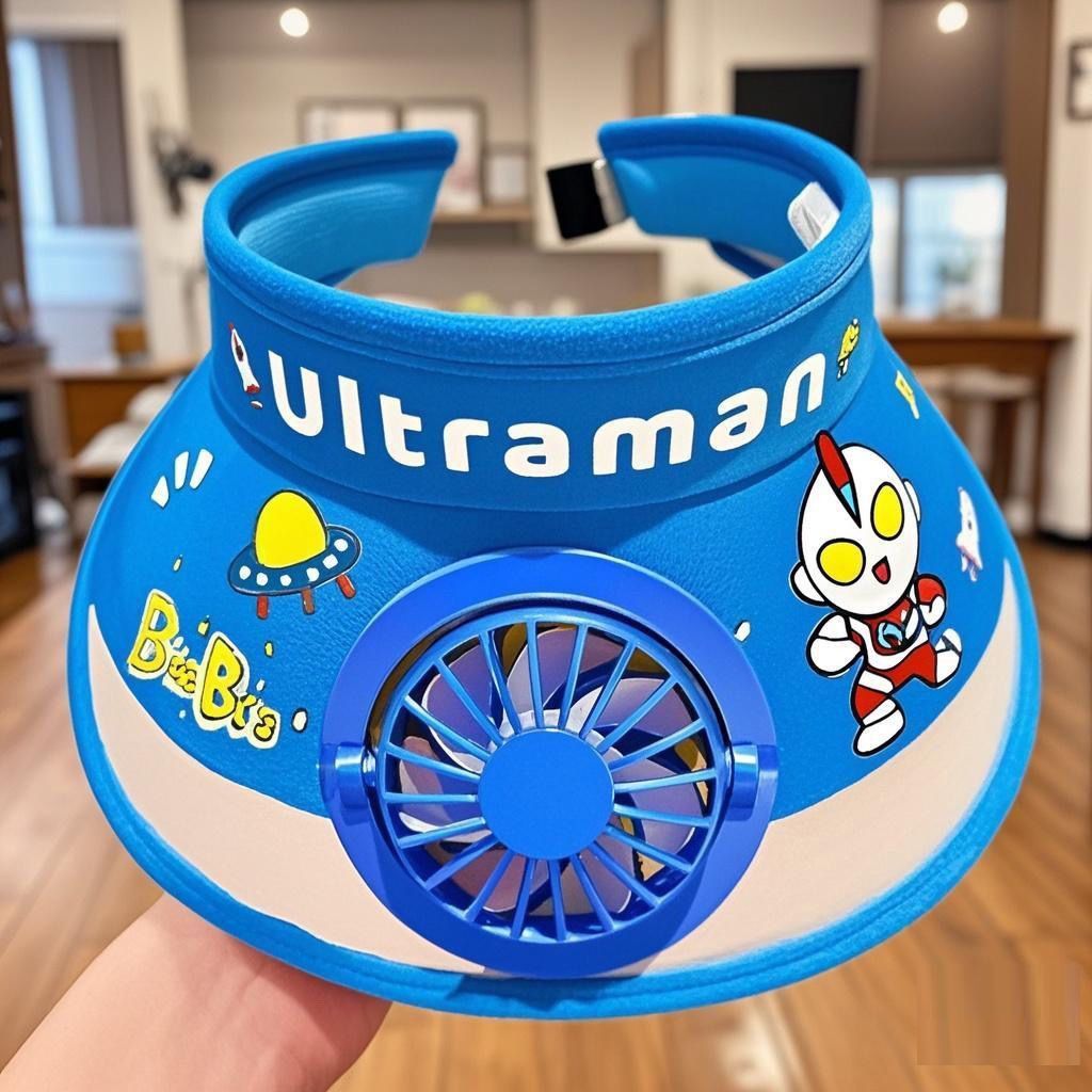 팬이있는 어린이 태양 보호 모자 여름 울트라 맨 태양 보호 모자 귀여운 아기 소년과 소녀 태양 모자
