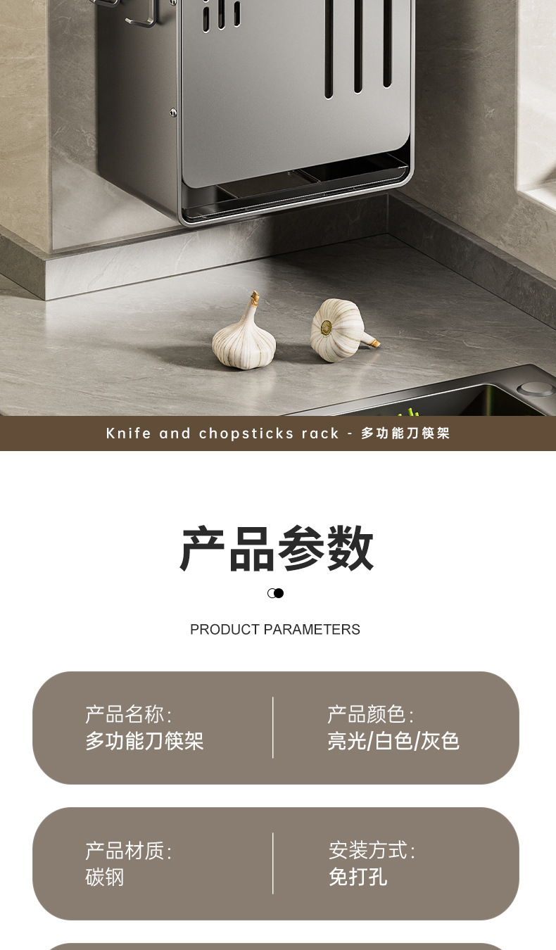 제조업체는 주방 펀치 프리 칼 홀더, 젓가락 튜브, 통합 보관함, 벽걸이 형 조리대 다기능 보관함을 공급합니다.