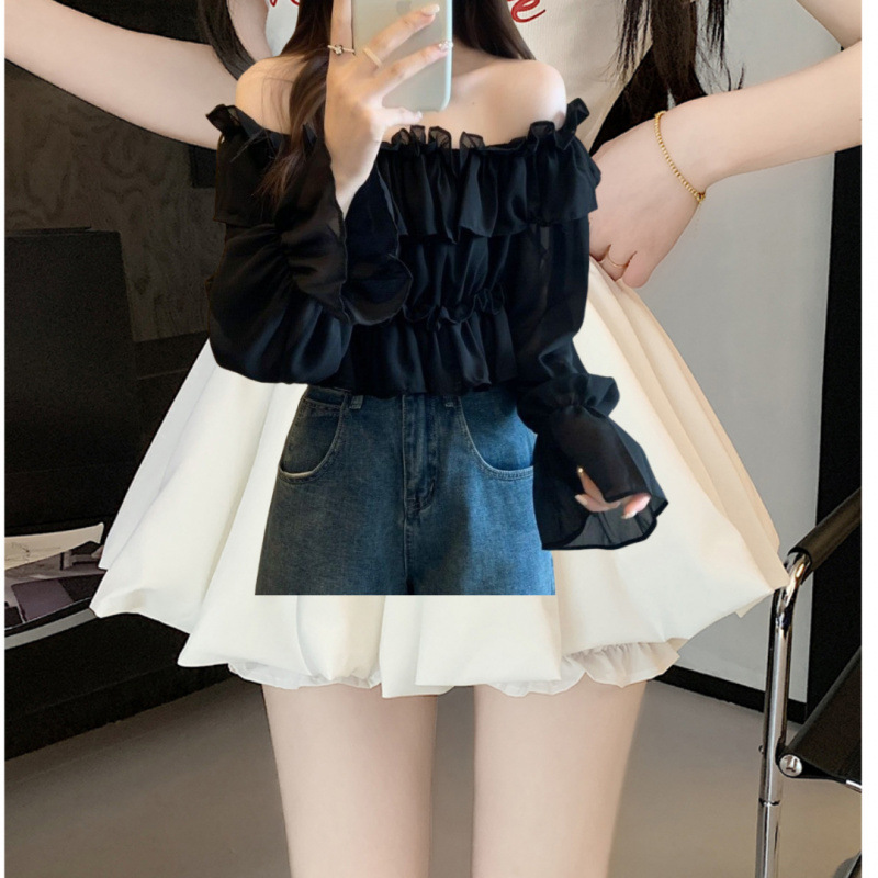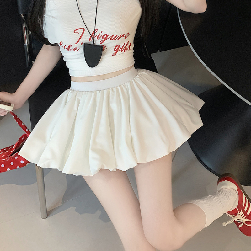 여름 여성용 화이트 버드 퍼프 스커트 하이웨이스트 A라인 플리츠 스커트 노출 방지 핫걸 호박 미니 스커트
