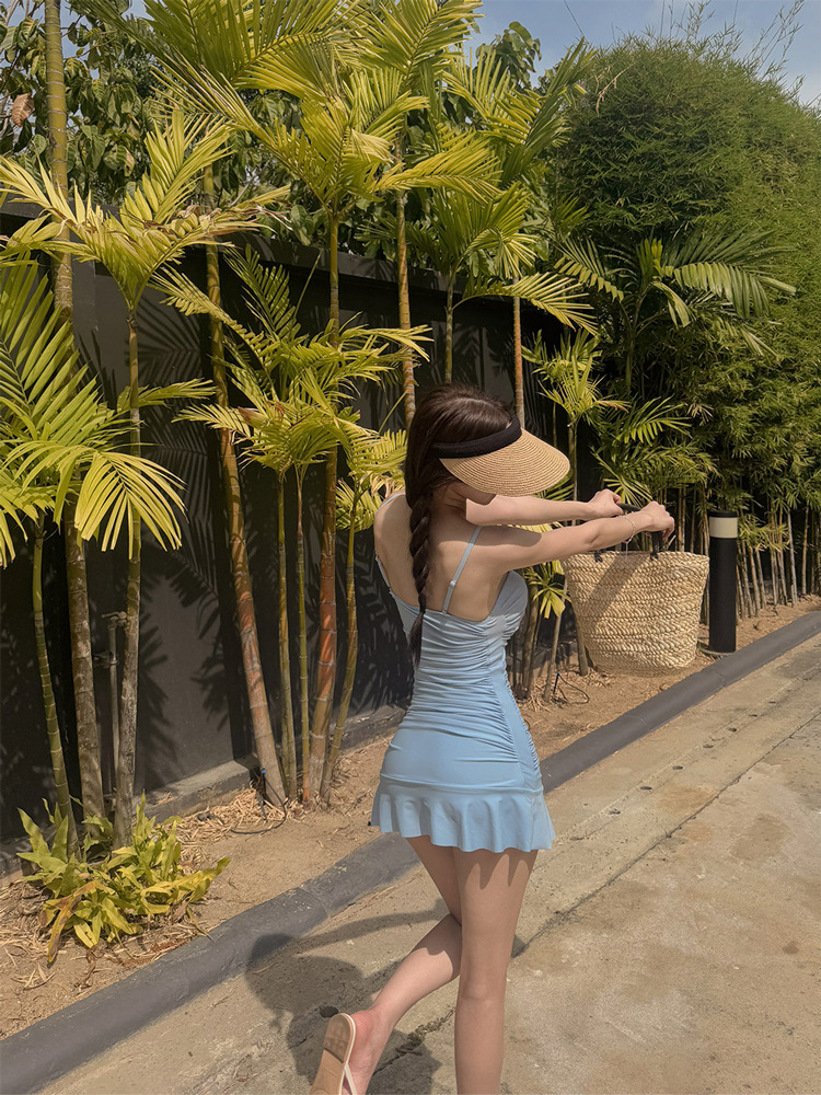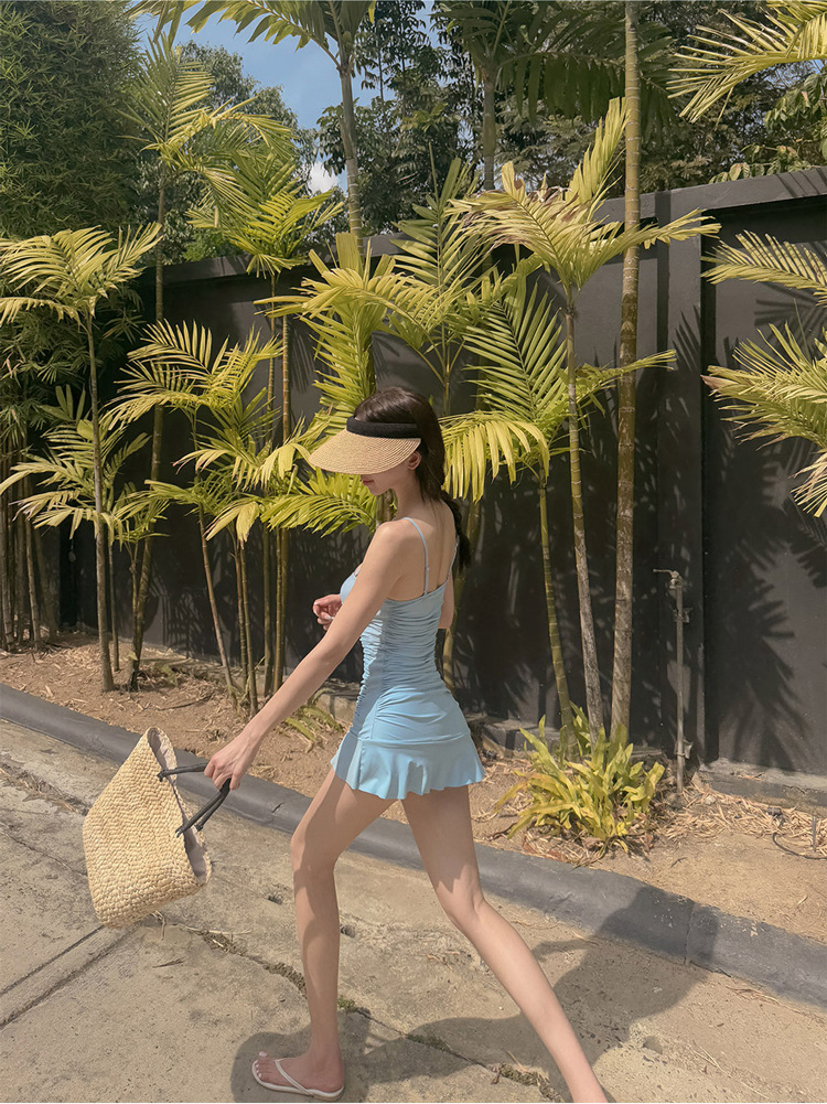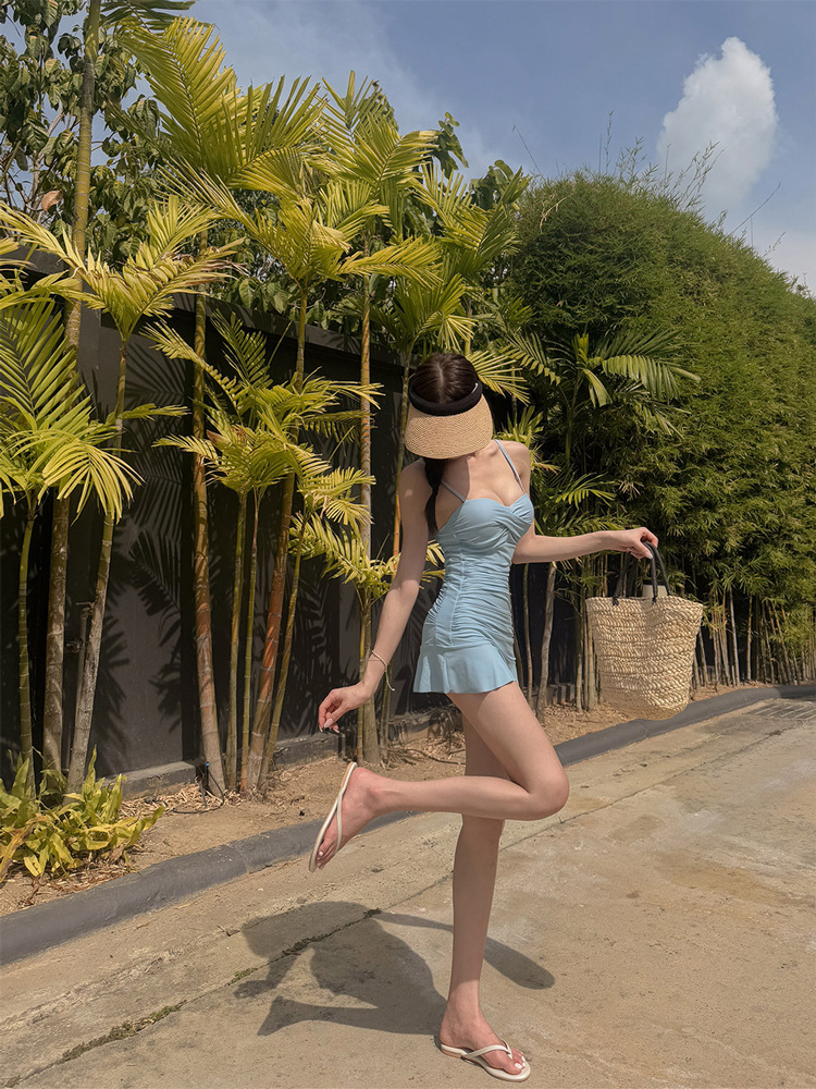 수영복 여성의 새로운 섹시 슬림 피트 튜브 탑 배 커버 슬리밍 스커트 스타일 스플릿 수영복 여성 인 스타일 솔리드 컬러 비키니스토어 가기