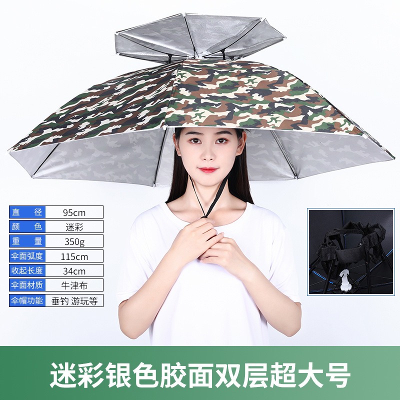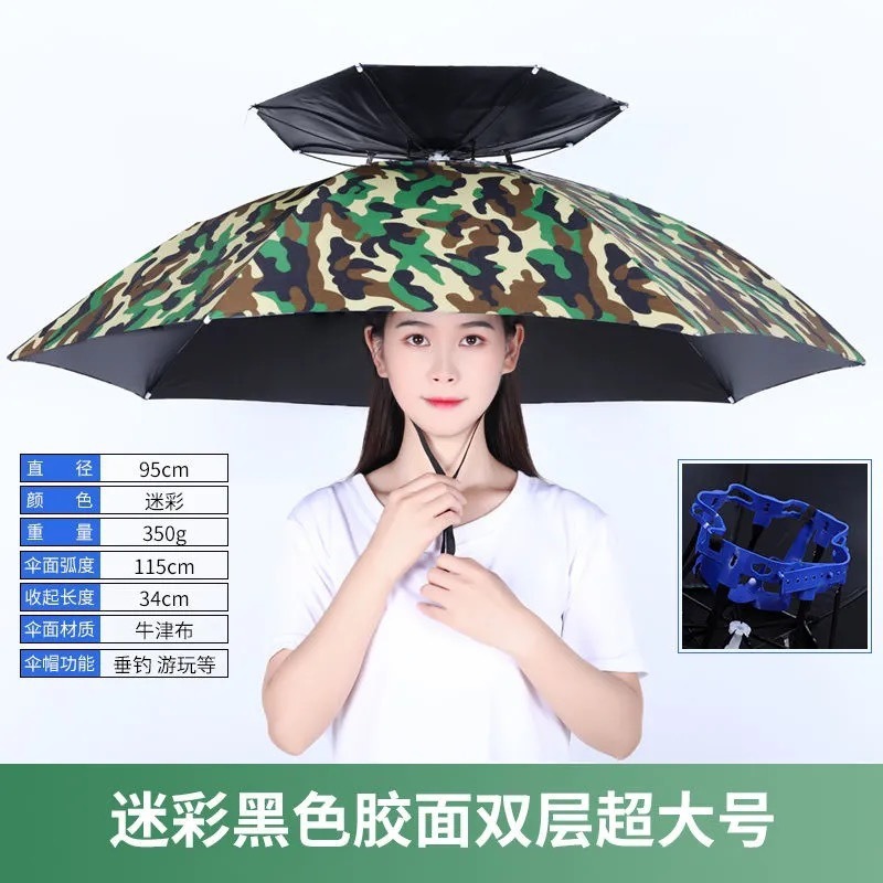 어린이 및 성인용 낚시 모자 우산, 대형 이중 모자, 남성용 및 여성용 우산 모자, 야외용 비 또는 빛 우산