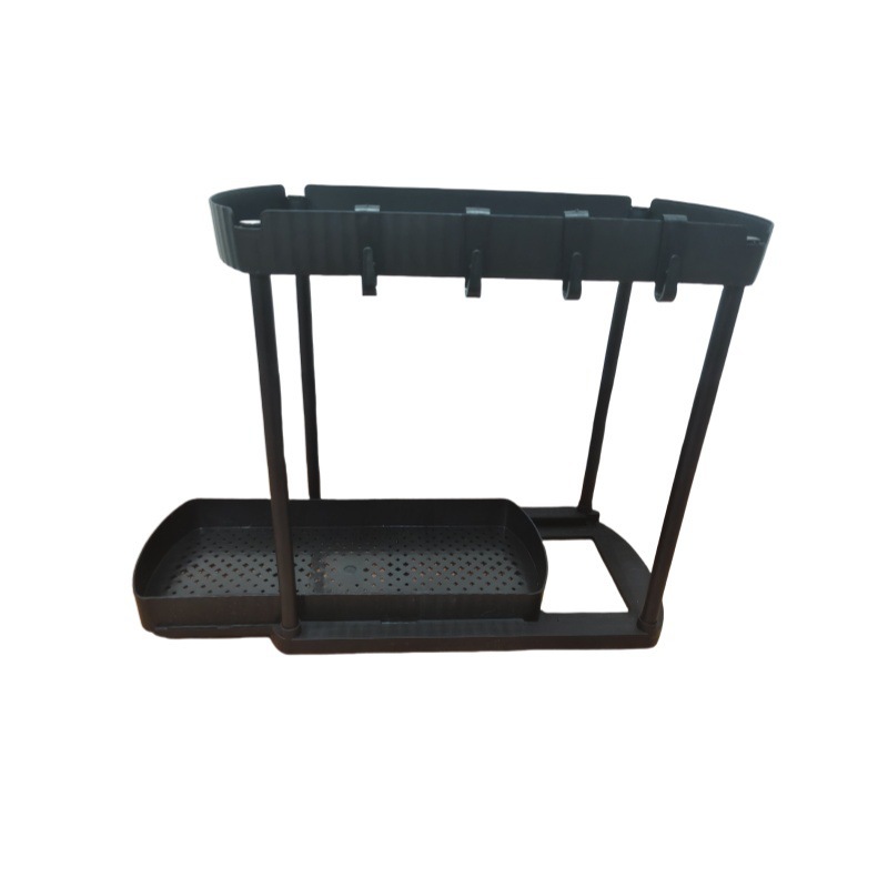 새로운 스타일의 풀아웃 이중층 펀치 없는 주방 풀아웃 조미료 랙 조리대 수납 바닥에서 천장까지 다기능 검정색 수납 공간