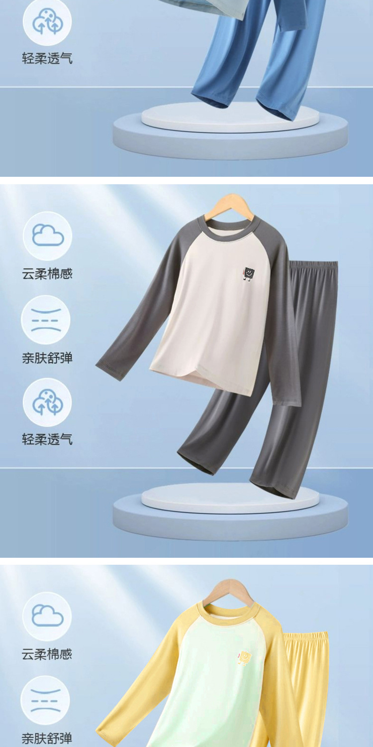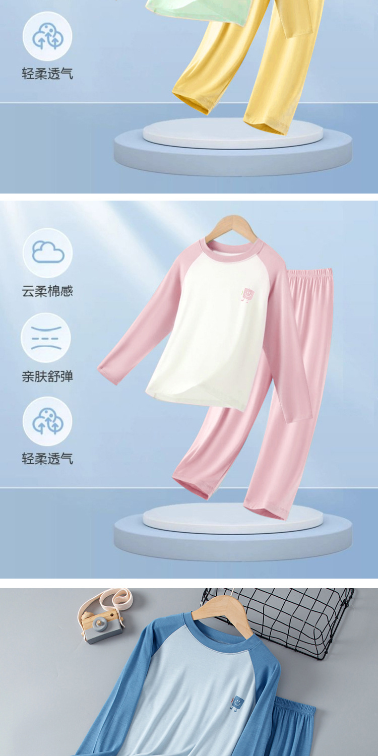 봄, 가을 아동 잠옷, 남아 모달 가정복 세트, 여아 에어컨 의류, 청소년 가을 옷 및 긴 바지스토어 가기