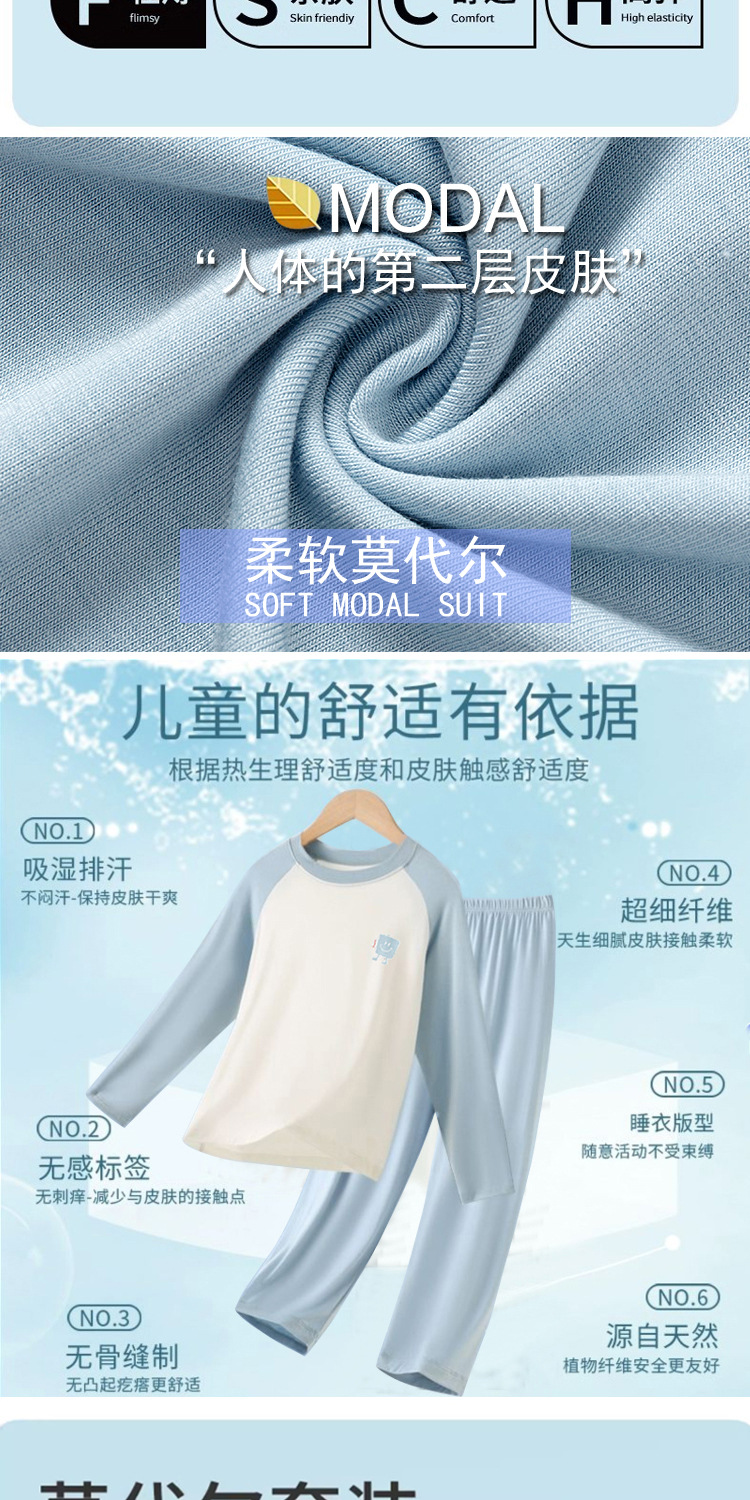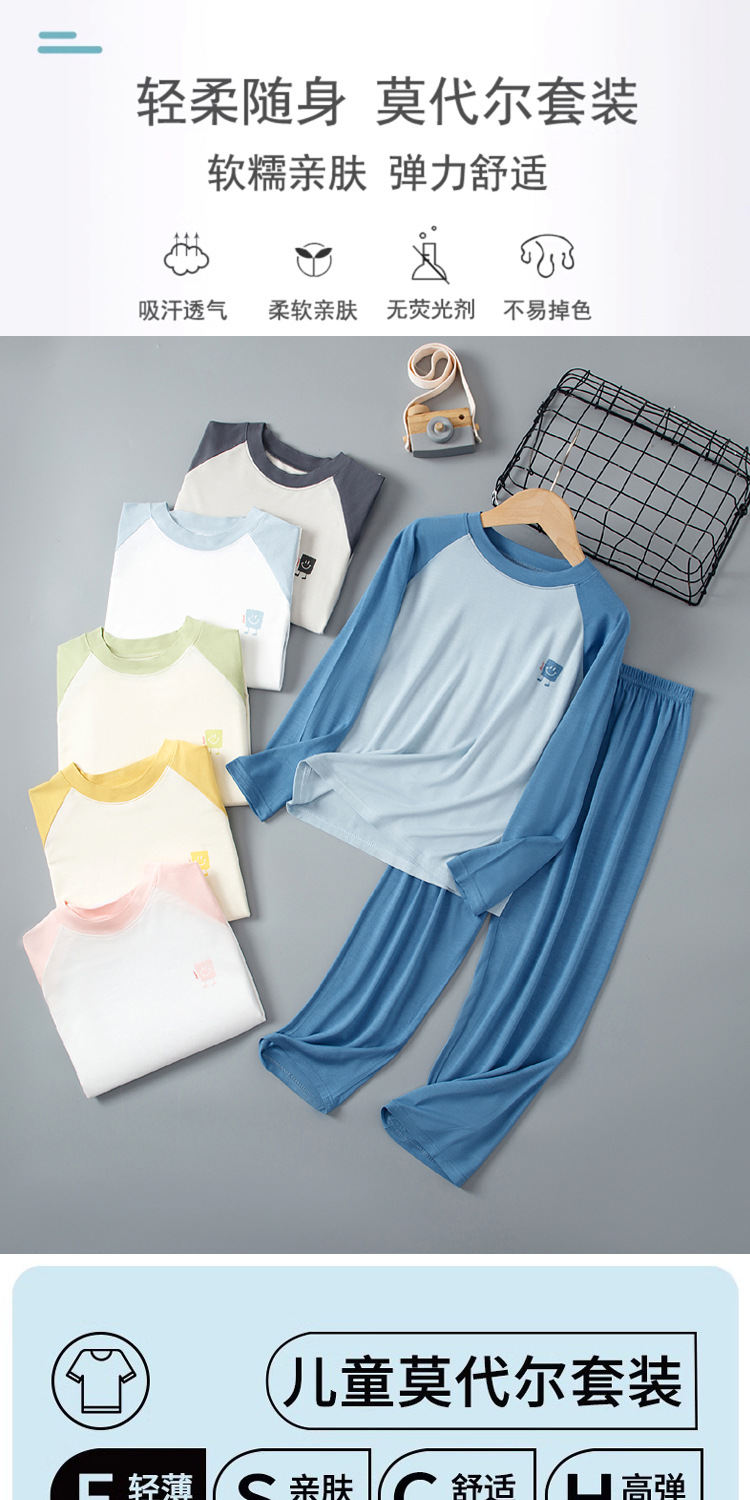 봄, 가을 아동 잠옷, 남아 모달 가정복 세트, 여아 에어컨 의류, 청소년 가을 옷 및 긴 바지