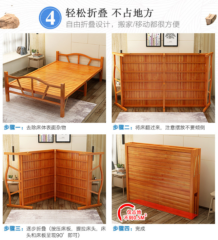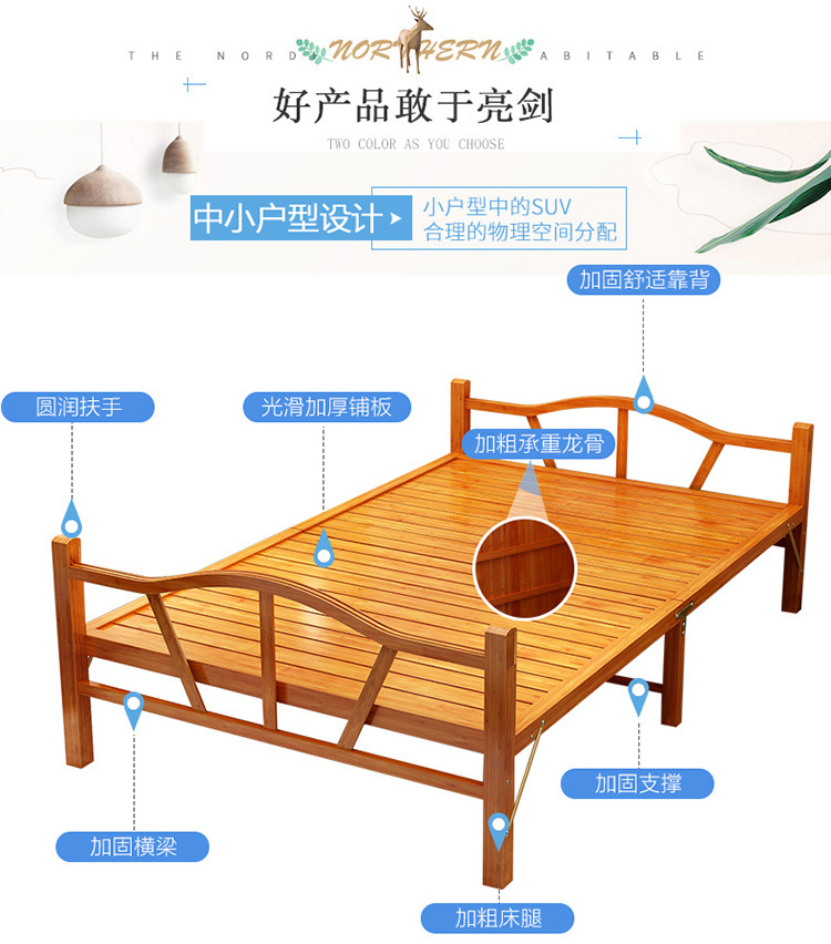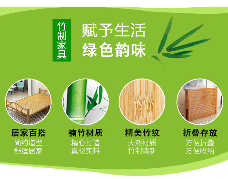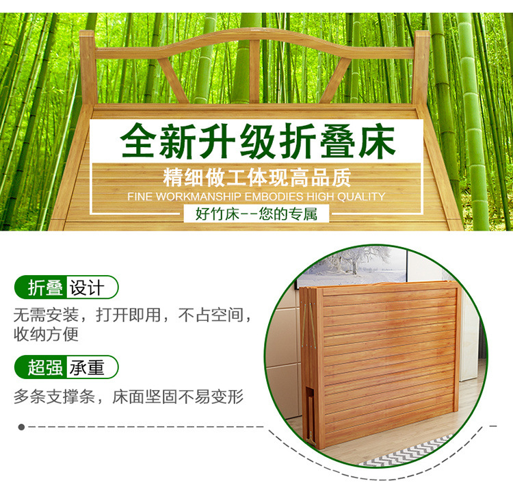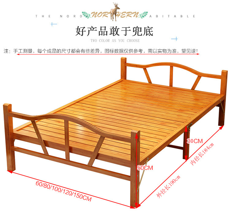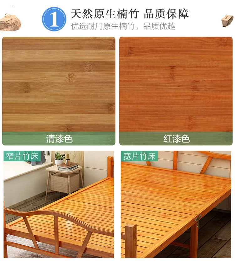1인용 및 2인용 접이식 대나무 침대, 간단한 가정용 강화 성인 낮잠 시원한 침대, 임대실 대나무 단단한 침대스토어 가기