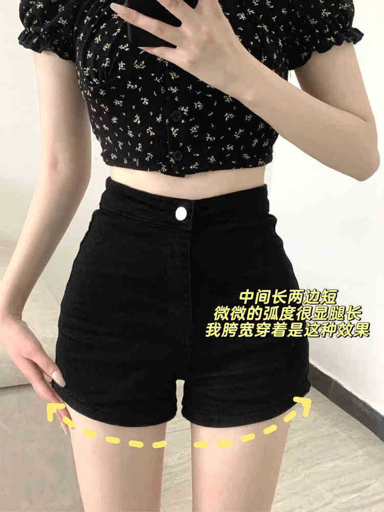 여성용 블랙 반바지, 2025년 여름 신상 하이웨이스트 핫걸 타이트 청바지, 엉덩이를 덮는 초짧은 핫팬츠