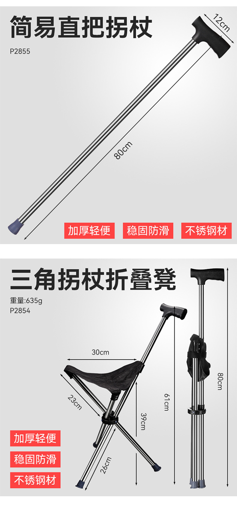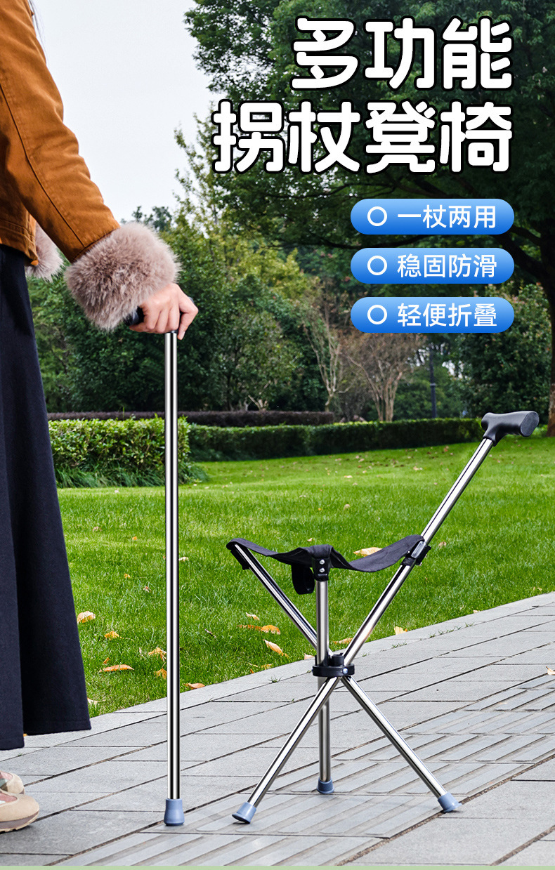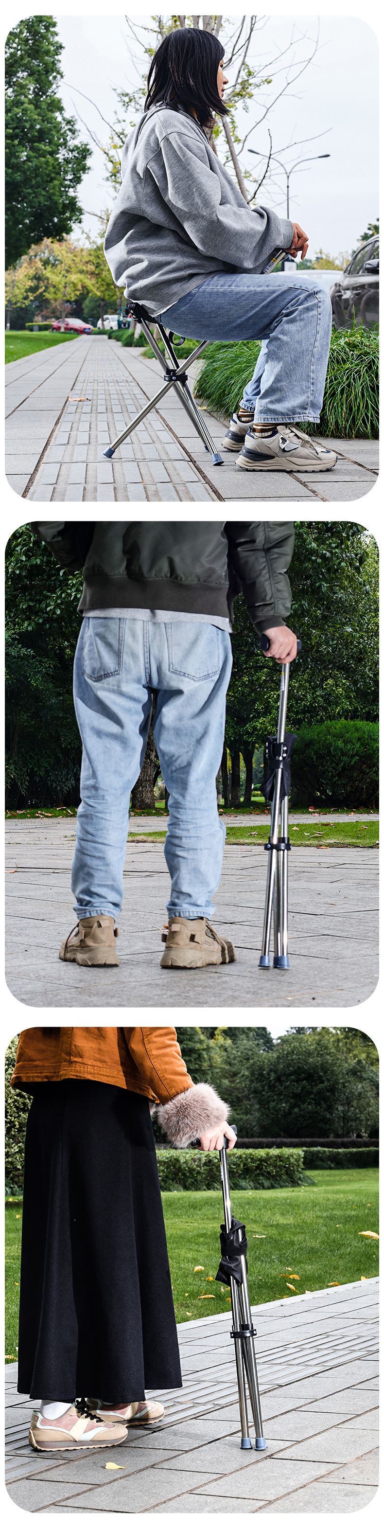 국경 간 휴대용 이중 목적 초경량 등산 야외 목발 의자 접이식 알루미늄 합금 노인 의자 쿠션