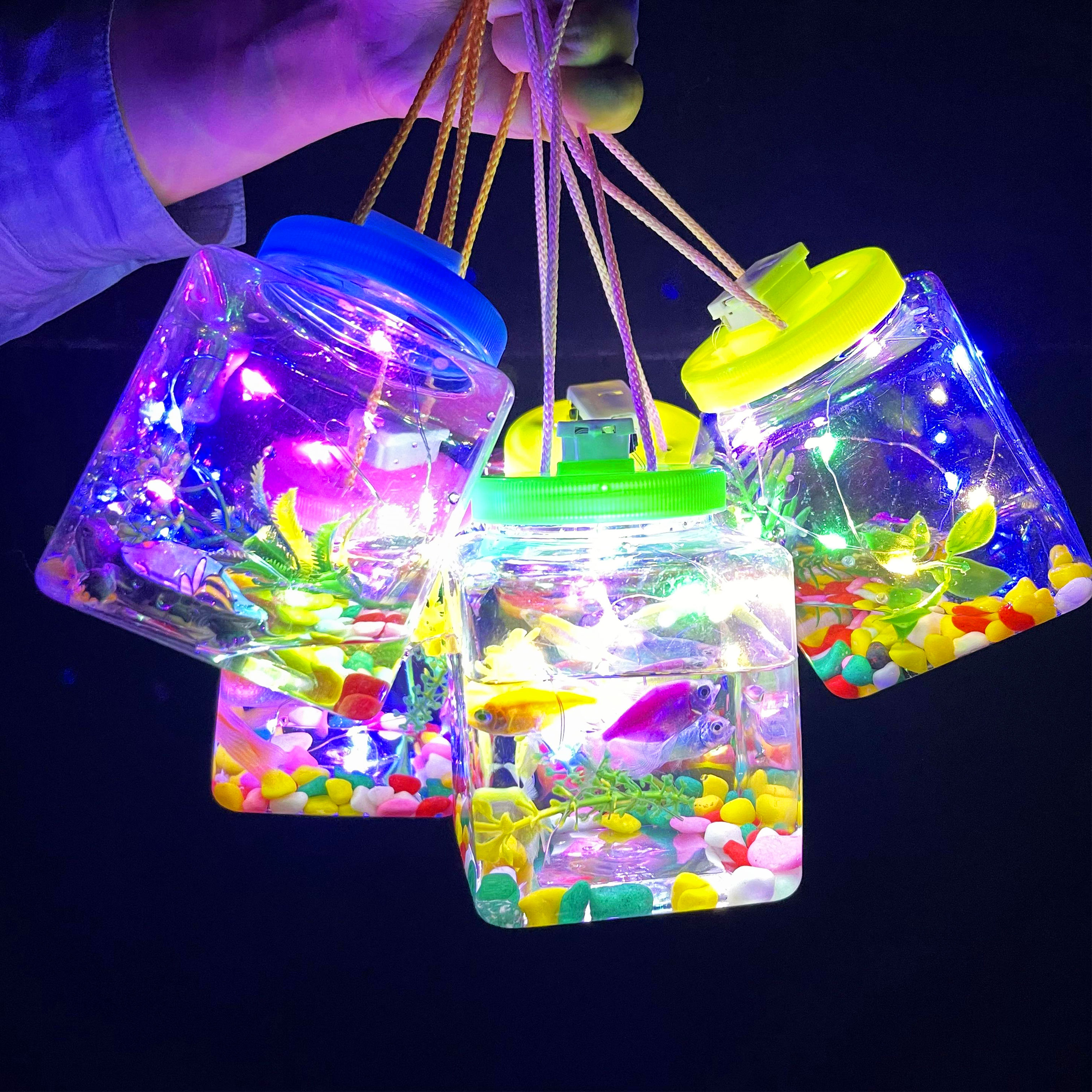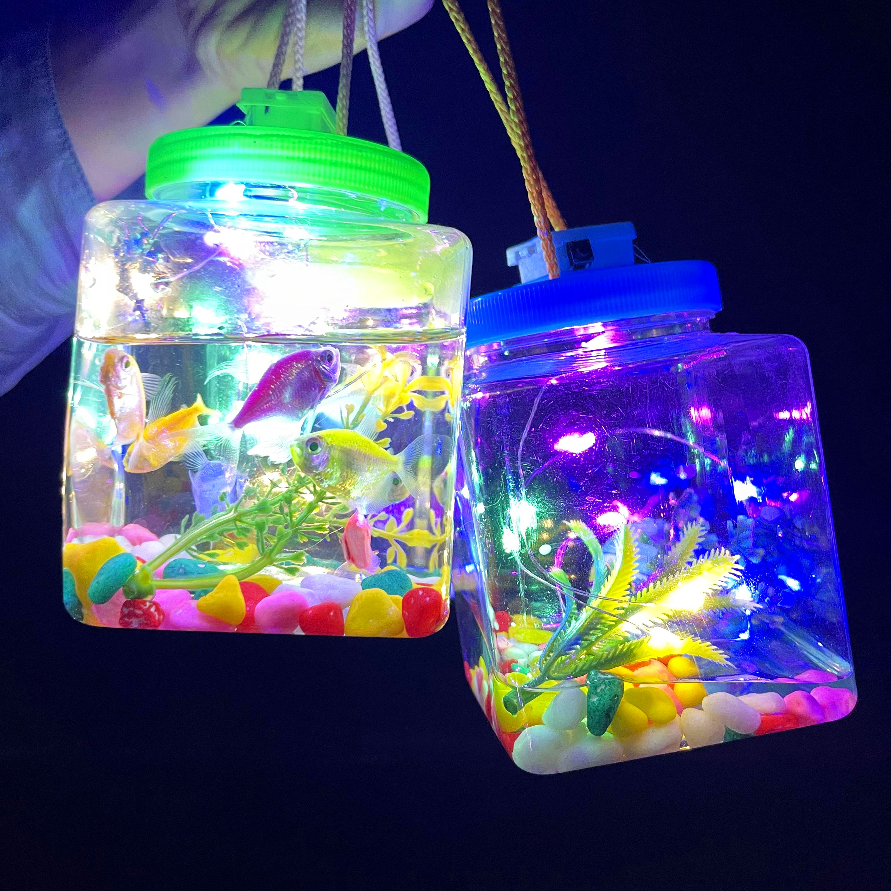 인터넷 연예인 물고기 버블 물고기 빛나는 작은 물고기 탱크 투명 플라스틱 해파리 병 전체 재료 야외 스톨 물고기 항아리