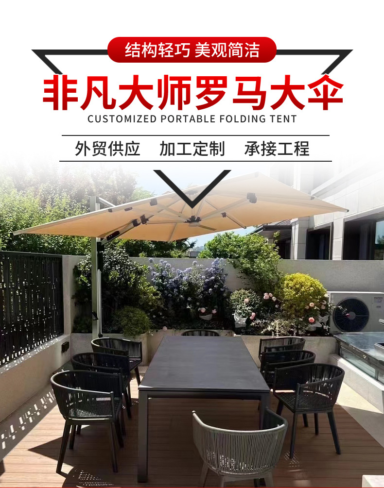 야외 안뜰 우산, 정원 우산, 청두 직선형 대형 태양 우산, 테라스 야외 태양광 스트립 로마 우산