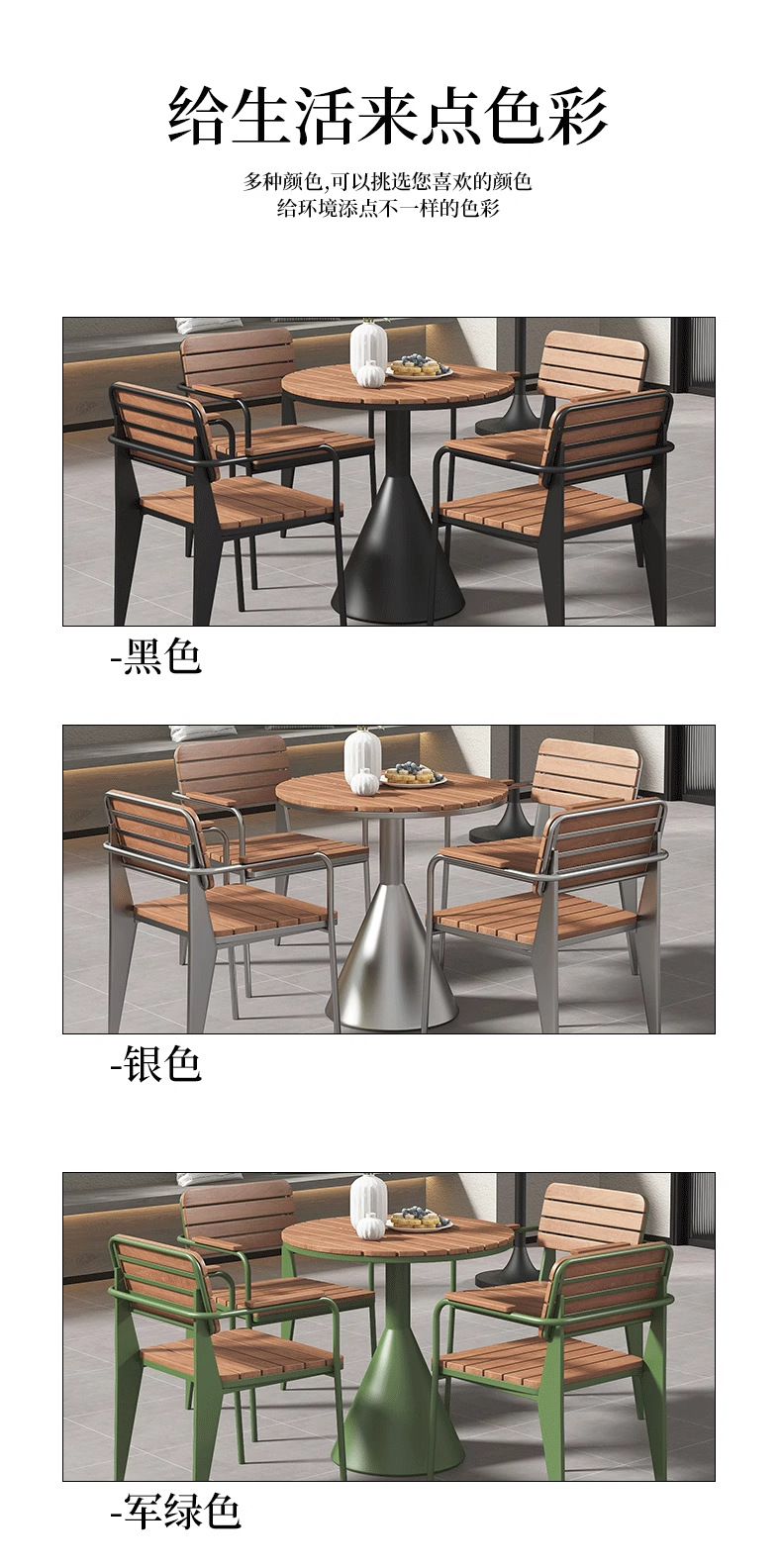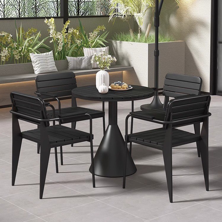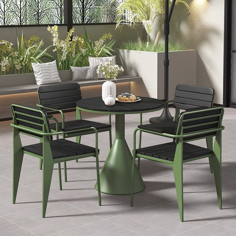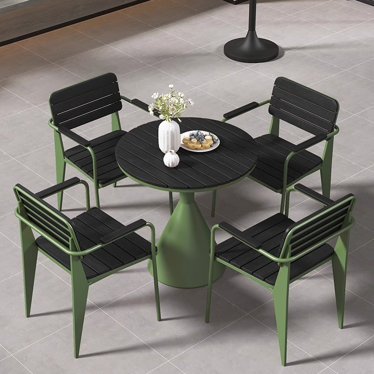 • 플라스틱 목재-블랙-밀리터리 그린 테이블과 의자 4개: 직경 60