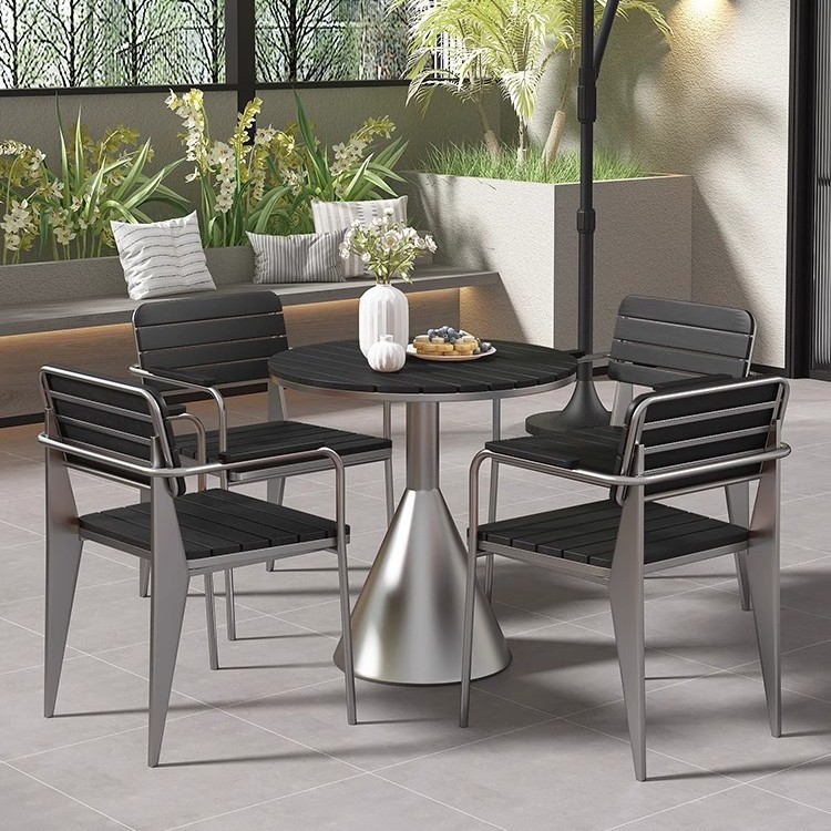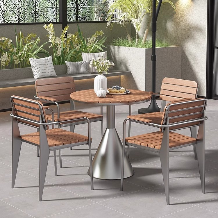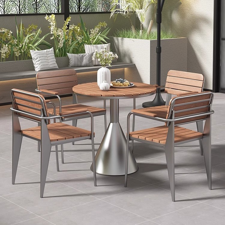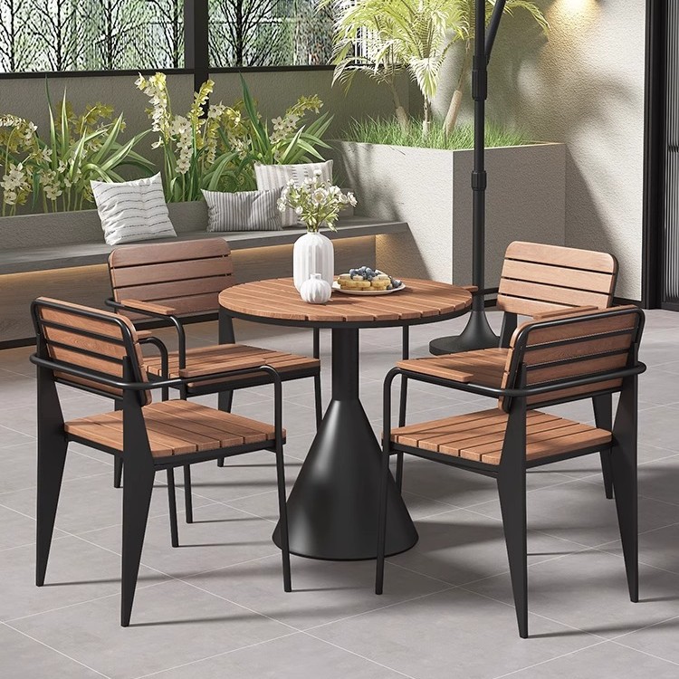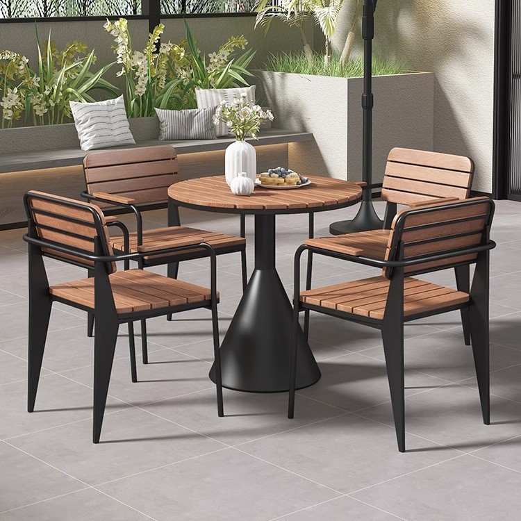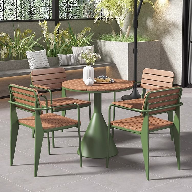 야외 안뜰 공원 철 작은 원형 테이블 야외 발코니 레저 식탁과 의자 밀크티 바베큐 티 테이블과 의자 세트