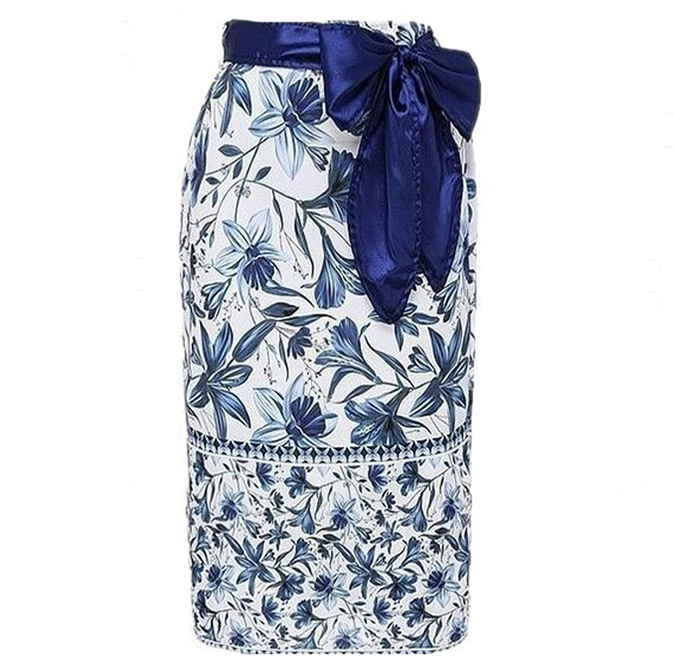• 파란색과 흰색 도자기 프린트 스커트 슈트