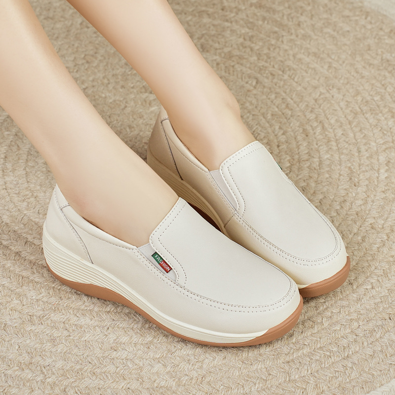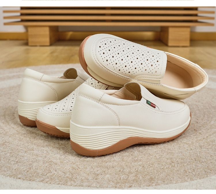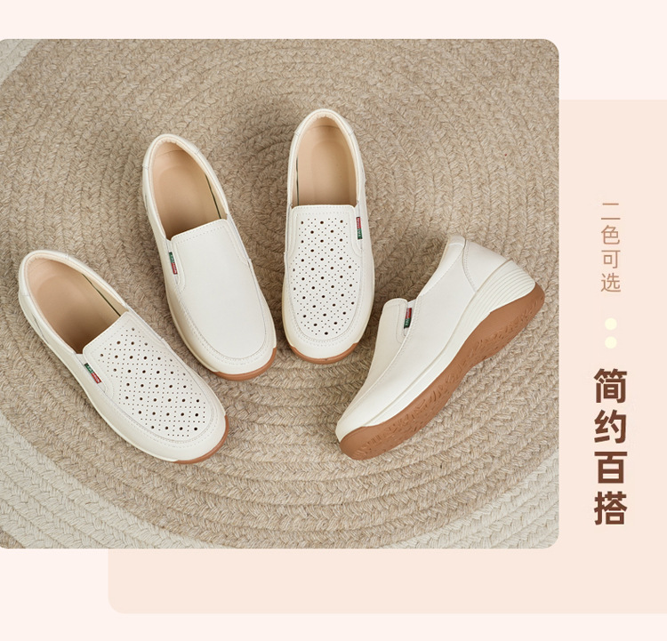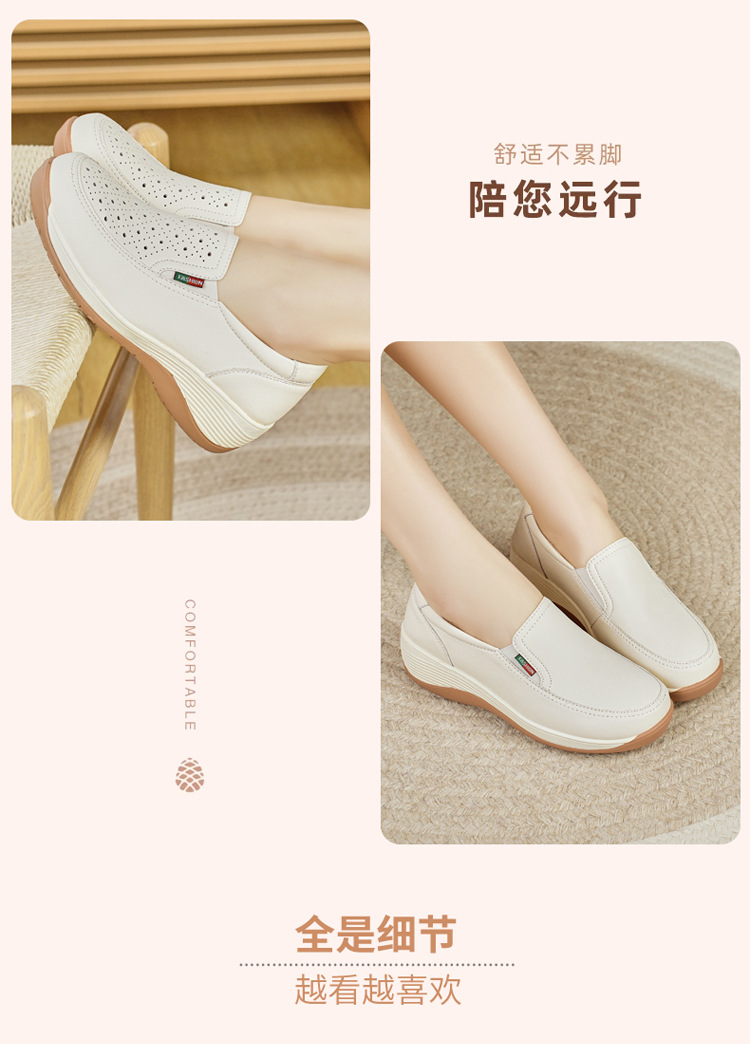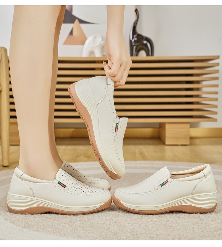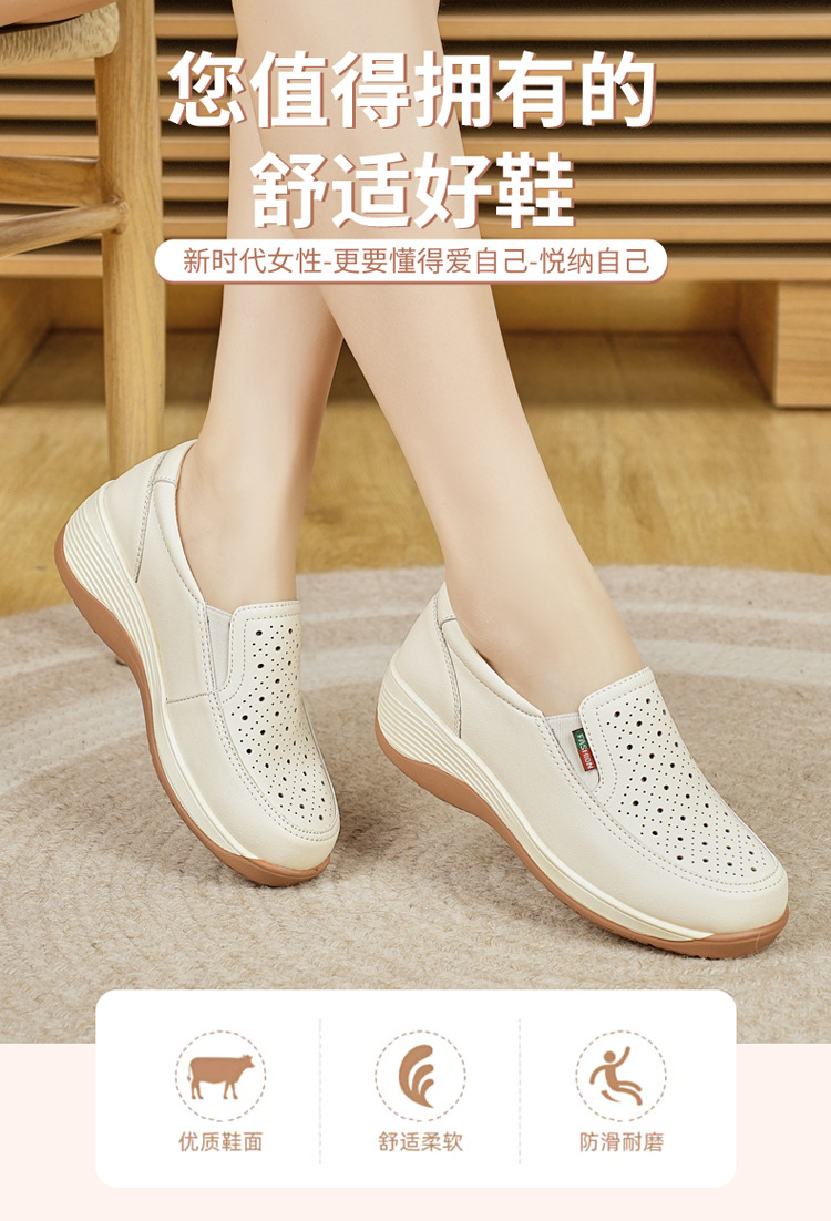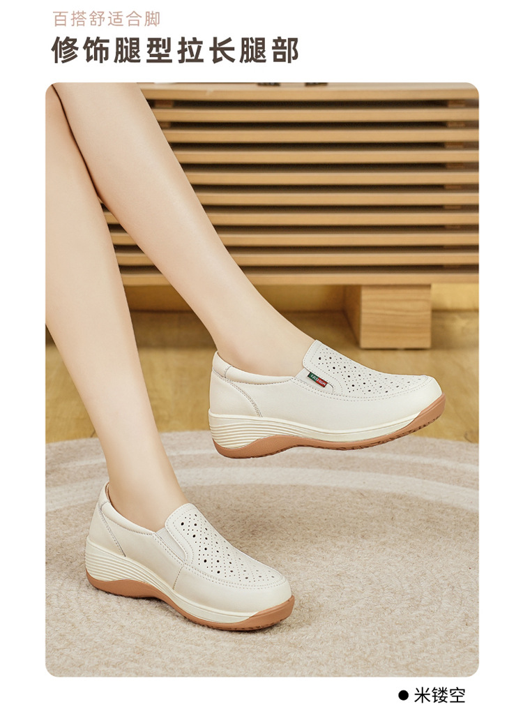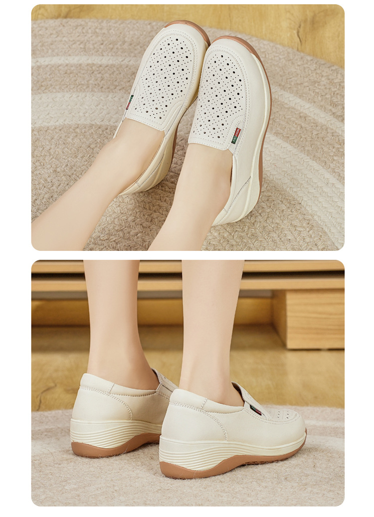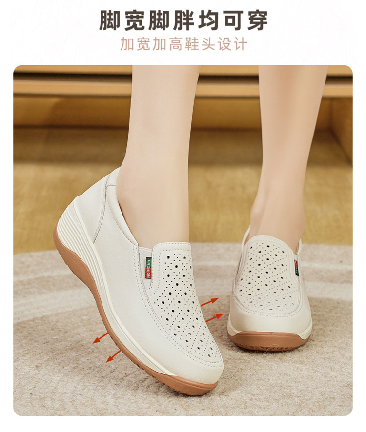 여성을위한 캐주얼 정품 가죽 나막신 봄, 여름 2025 새로운 여행 엄마 신발 두꺼운 밑창 웨지 통기성 중공 여성 신발스토어 가기
