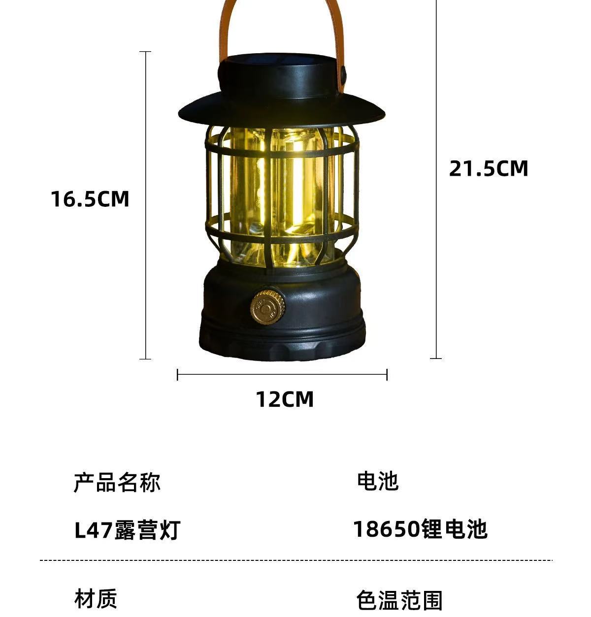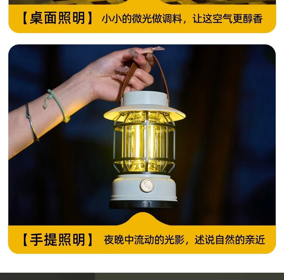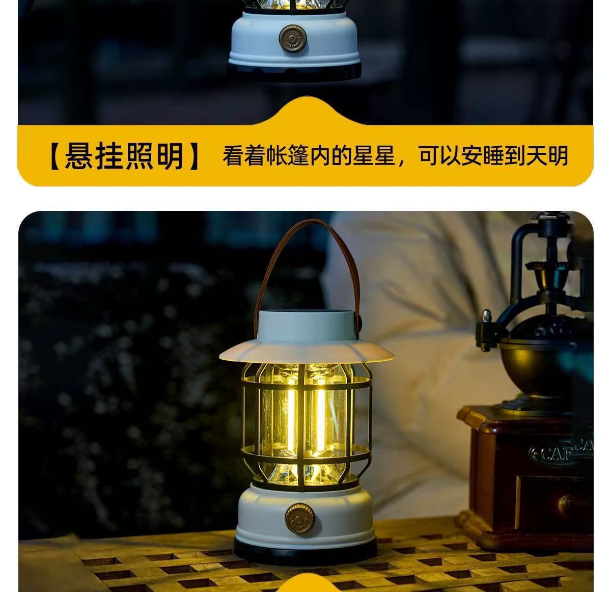 새로운 태양 캠핑 램프 야외 텐트 램프 분위기 긴 배터리 수명 복고풍 말 랜턴 조명 충전식 캠핑 램프스토어 가기
