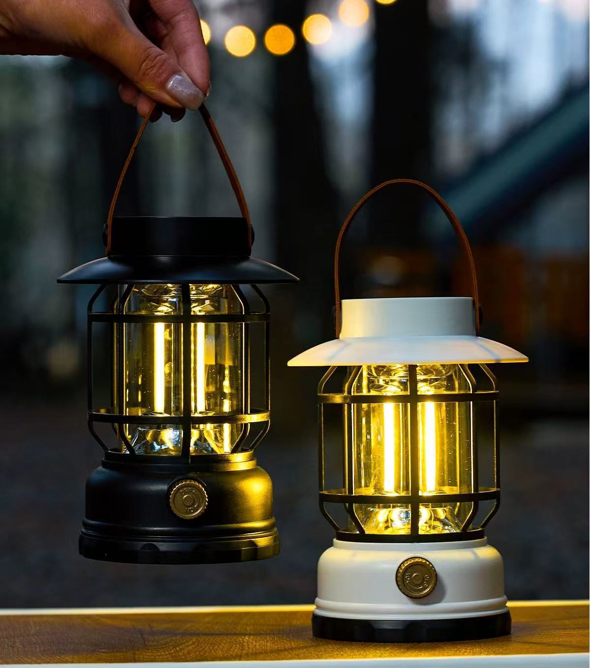 새로운 태양 캠핑 램프 야외 텐트 램프 분위기 긴 배터리 수명 복고풍 말 랜턴 조명 충전식 캠핑 램프