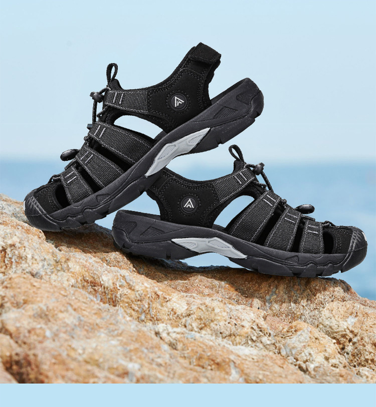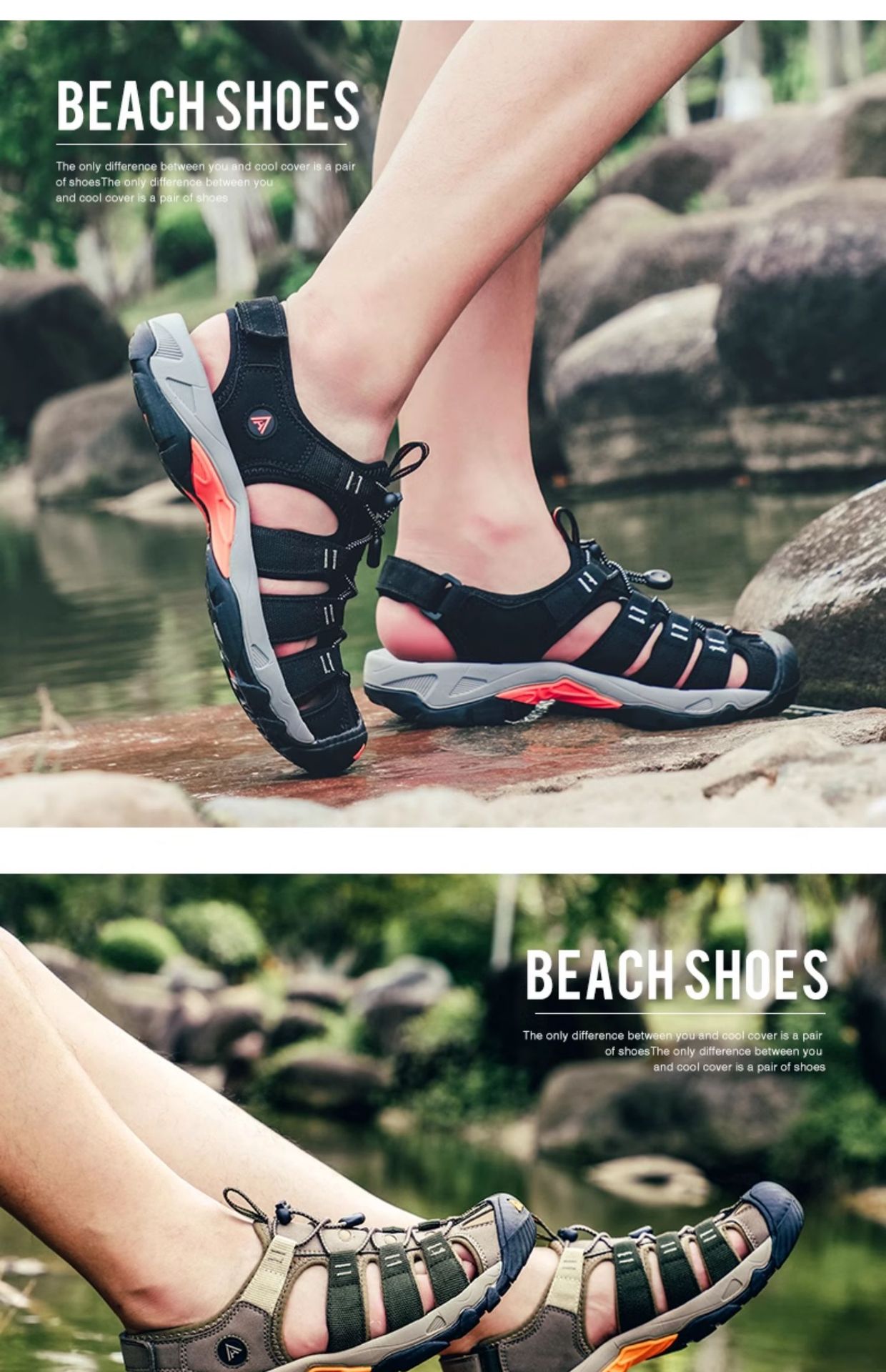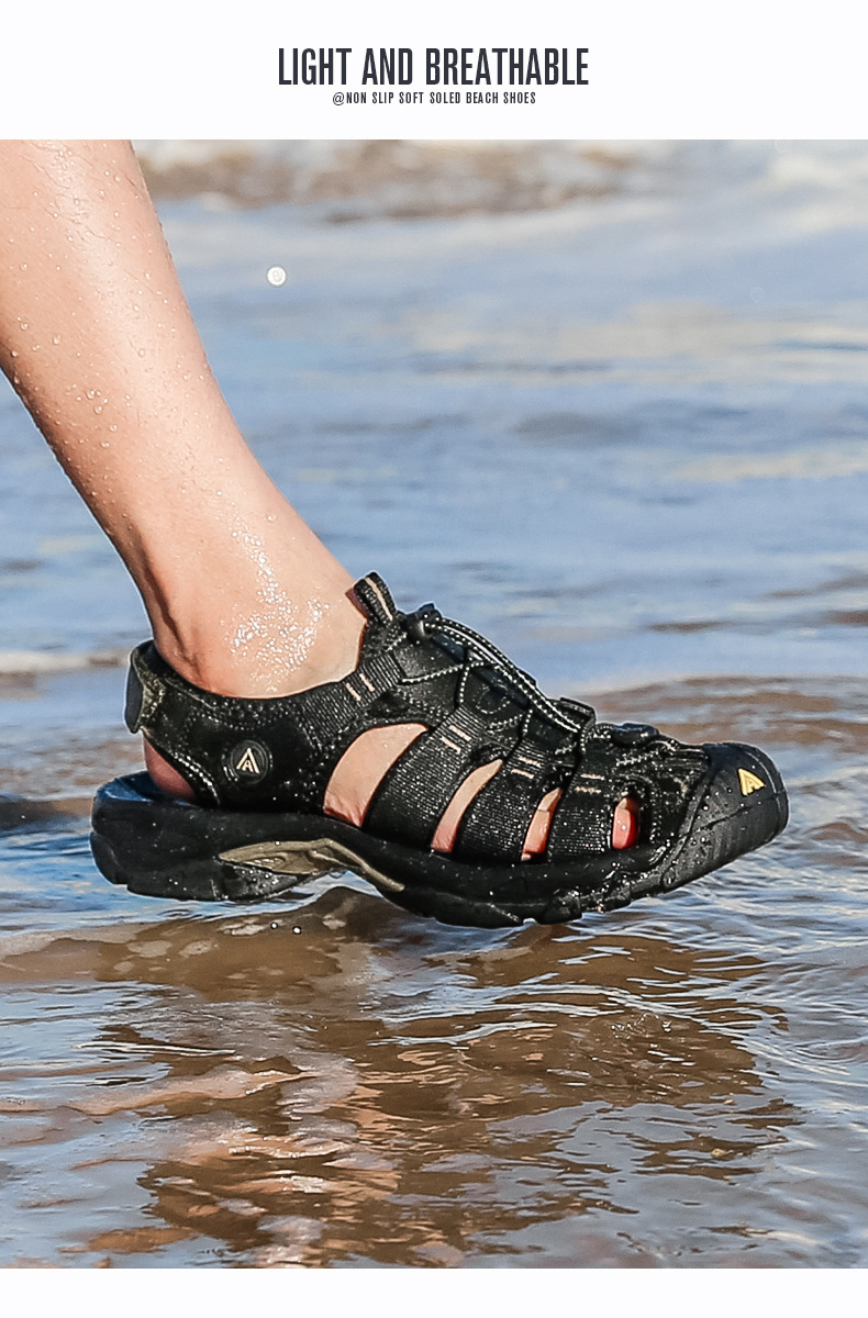 남성용 하이투 캐주얼 슈즈, 중공 통기성 소프트 솔 충격 흡수 발가락 스포츠 샌들, 남성용 야외 미끄럼 방지 내마모성 비치 슈즈