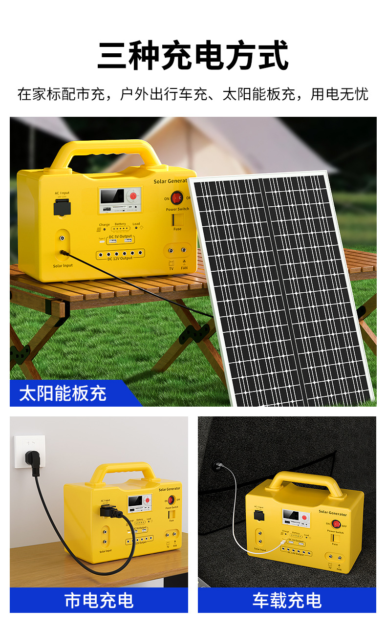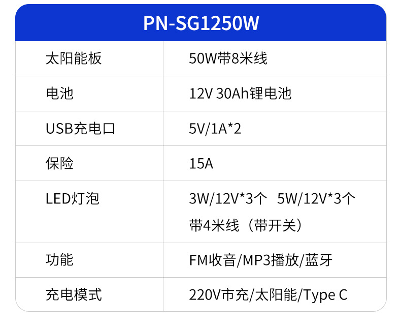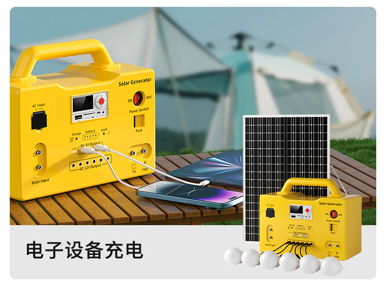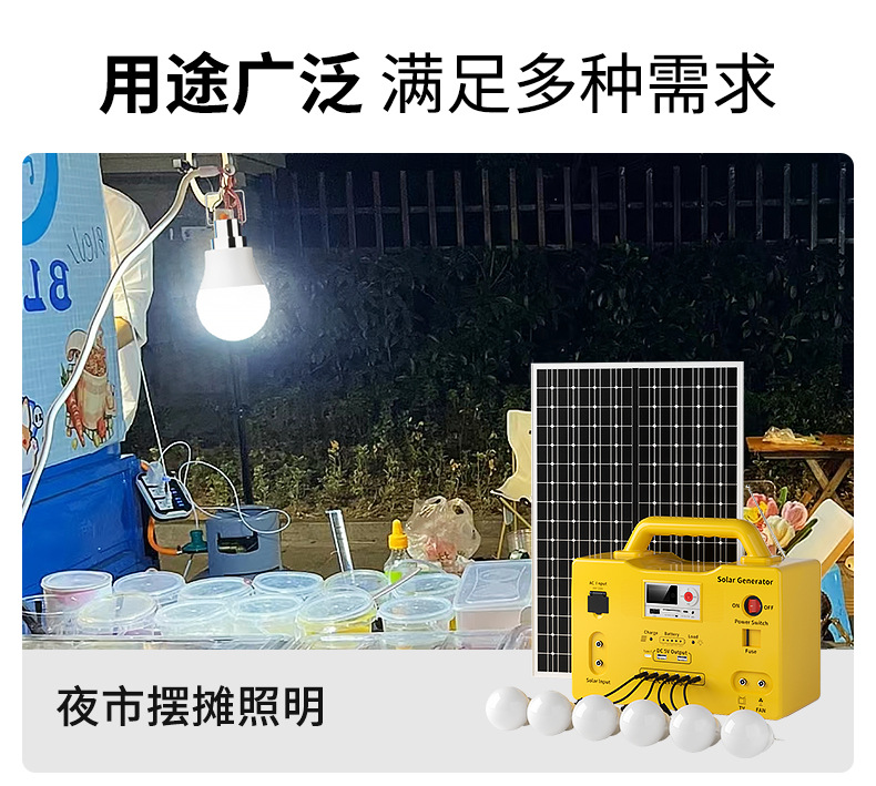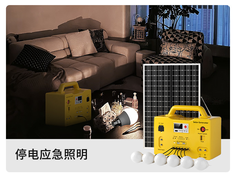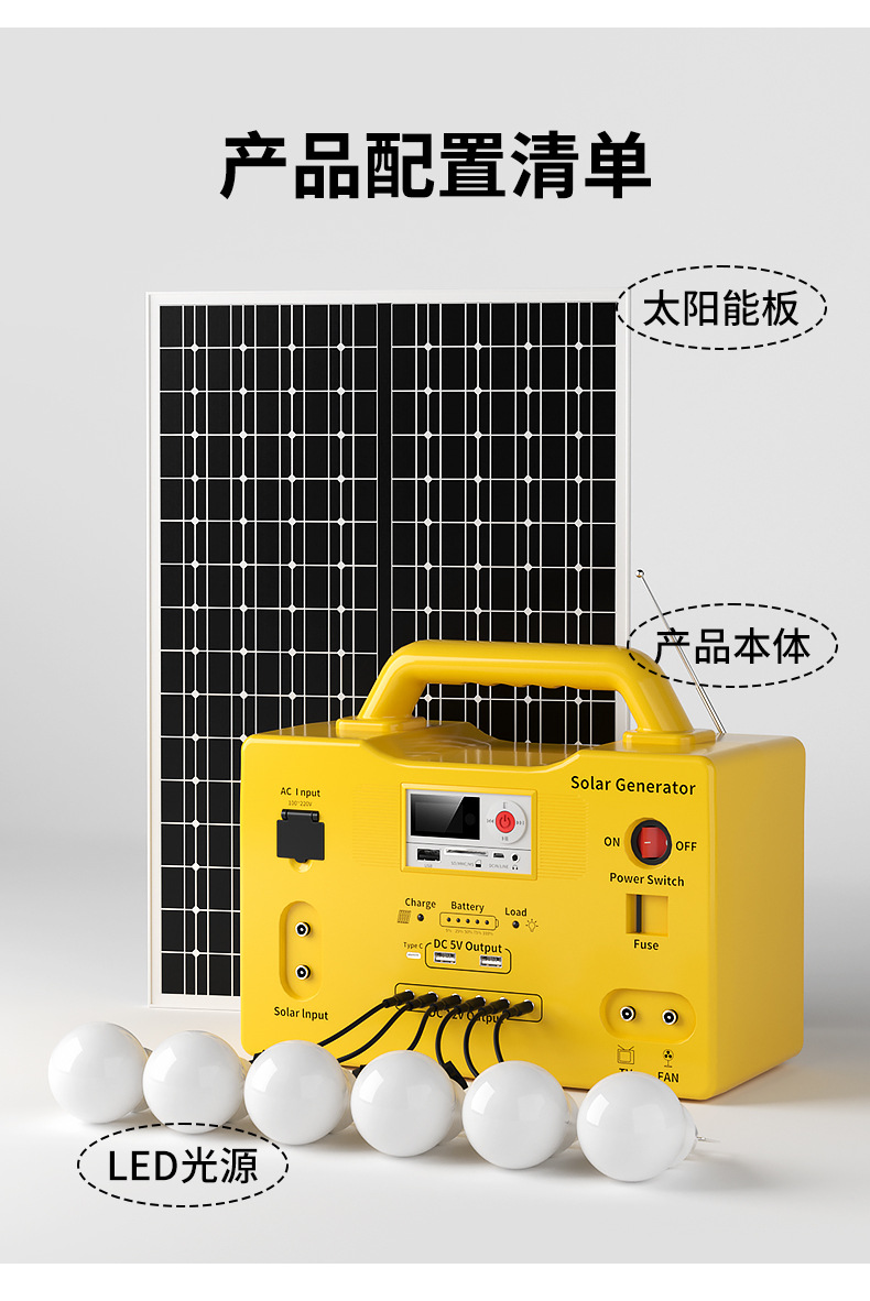 • 12V30Ah 휴대용 전원 공급 장치 + 50W(태양광 패널) + 전구 6개