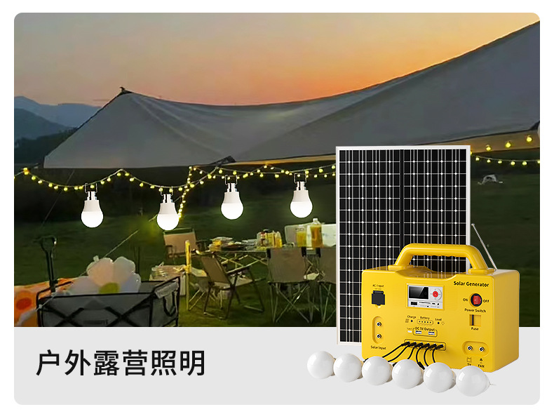 • 12V10Ah 휴대용 전원 공급 장치 + 20W(태양광 패널) + 전구 6개