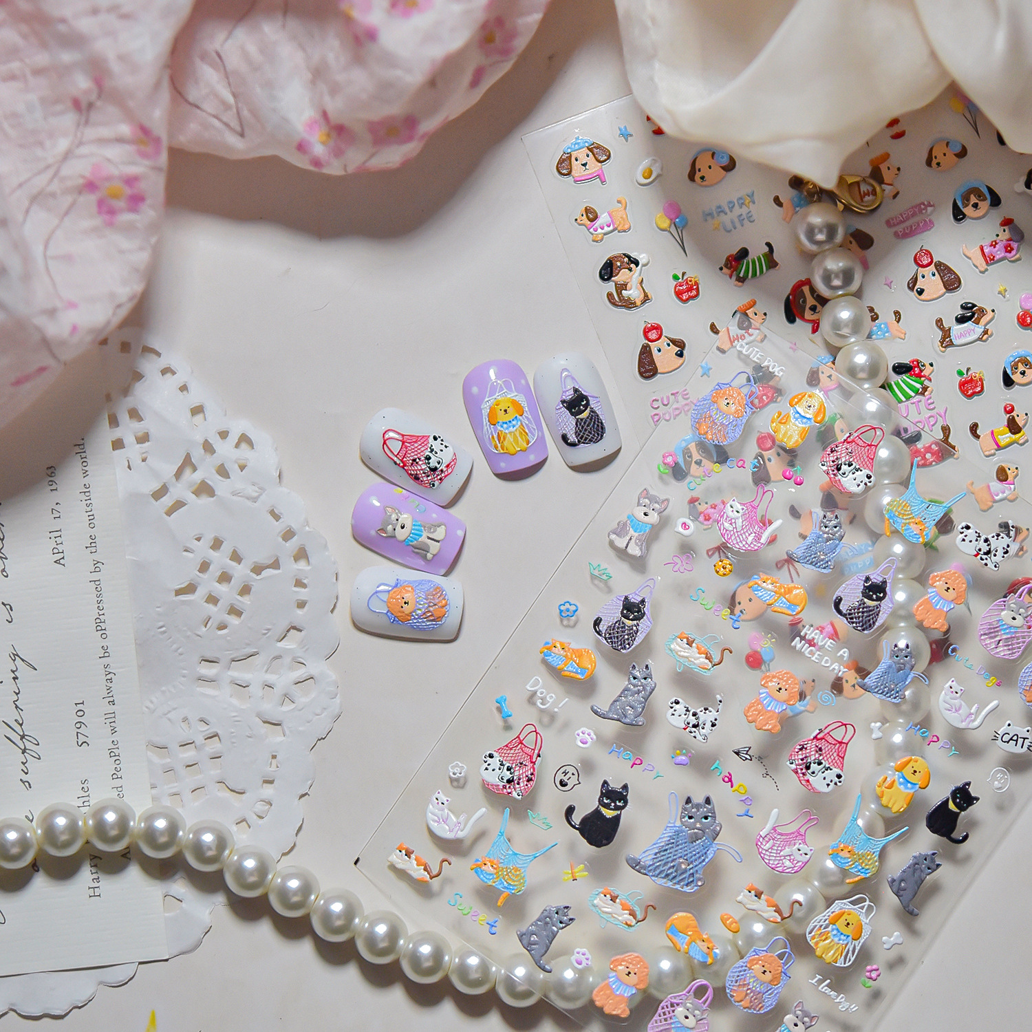 tomoni 양각 네일 아트 스티커 작은 빨간 책 인기 귀여운 어린이 네일 스티커 해피 닥스훈트 액세서리 스티커스토어 가기
