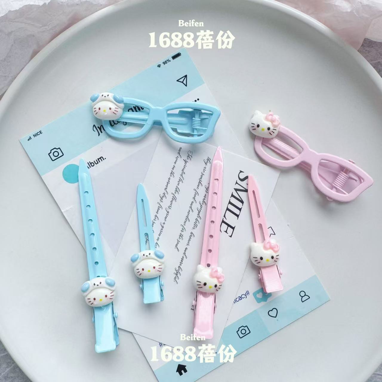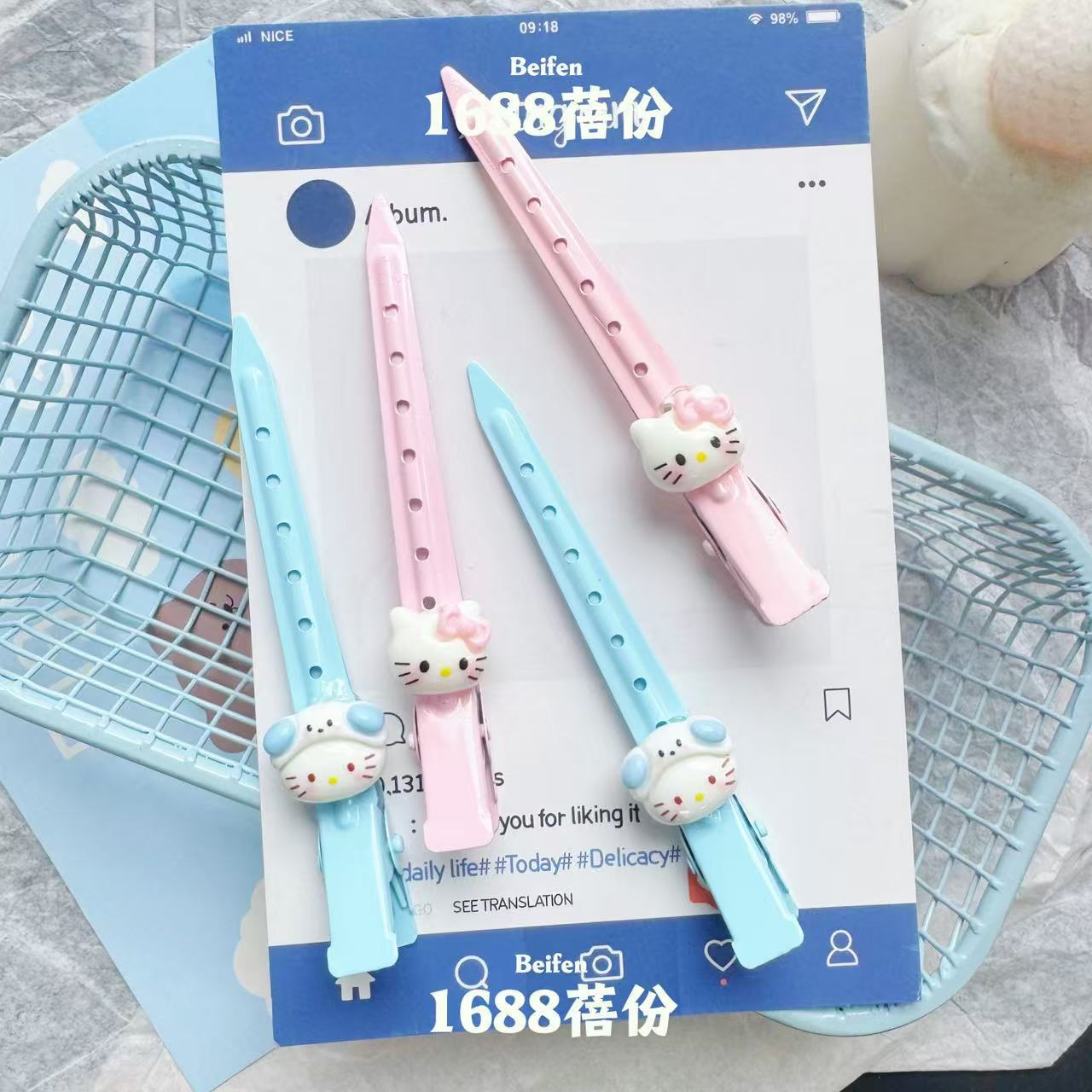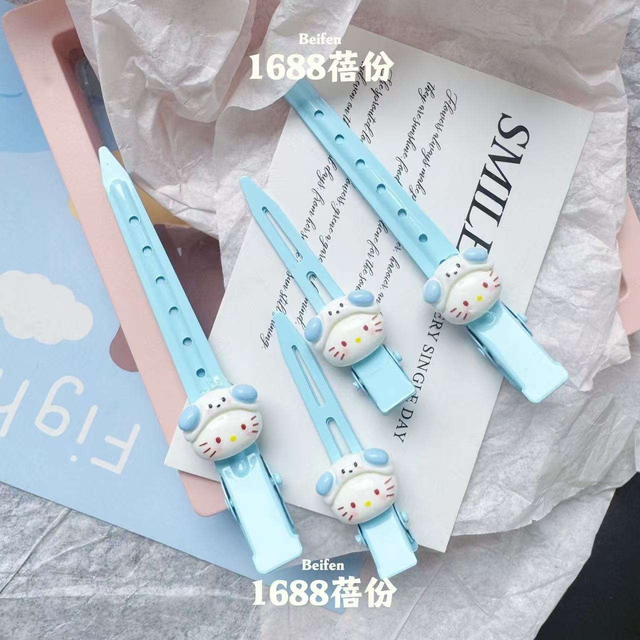 달콤한 만화 핑크와 블루 고양이 무봉제 머리핀 사이드 클립 소녀 하트 귀여운 다용도 덕빌 클립 어린이 헤어 액세서리