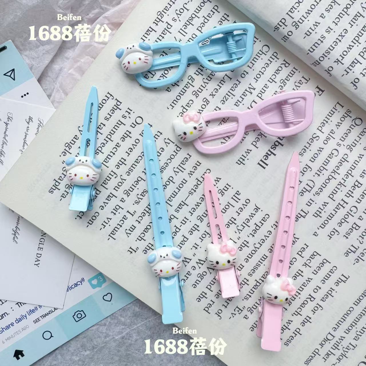 달콤한 만화 핑크와 블루 고양이 무봉제 머리핀 사이드 클립 소녀 하트 귀여운 다용도 덕빌 클립 어린이 헤어 액세서리스토어 가기