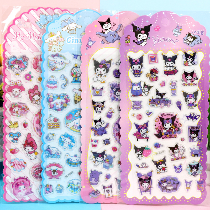 Sanrio Kuromi 3D 입체 양각 크리스탈 접착제 방수 스티커 소녀와 어린이 만화 귀여운 핸드북 스티커스토어 가기