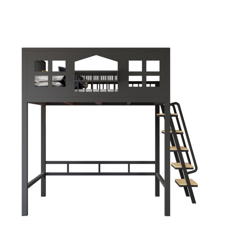 아트 침대 북유럽 두꺼운 철제 프레임 침대 작은 아파트 공간 절약형 높낮이 침대 이중 단일 상단 로프트 침대 어린이 침대