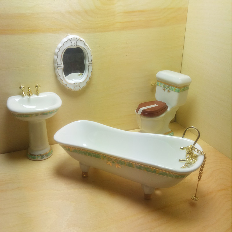 : 소형 인형의 집 세라믹 욕실 장식 모델 미니 욕실 세트 촬영 소품스토어 가기
