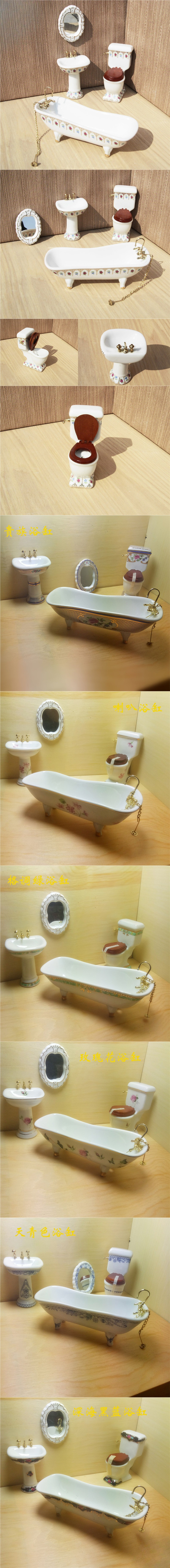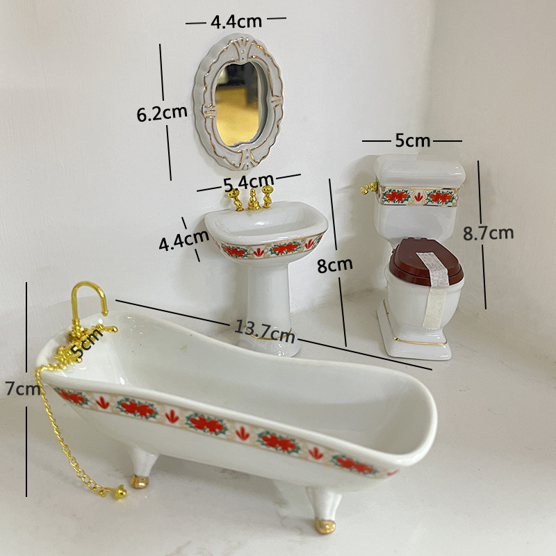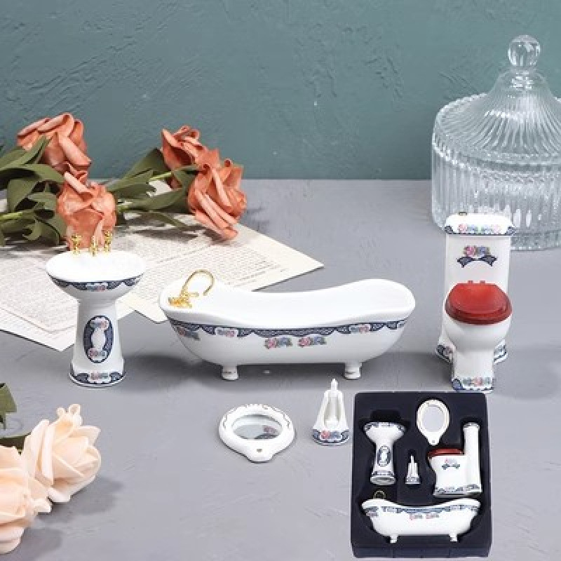: 소형 인형의 집 세라믹 욕실 장식 모델 미니 욕실 세트 촬영 소품