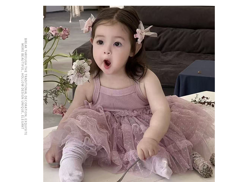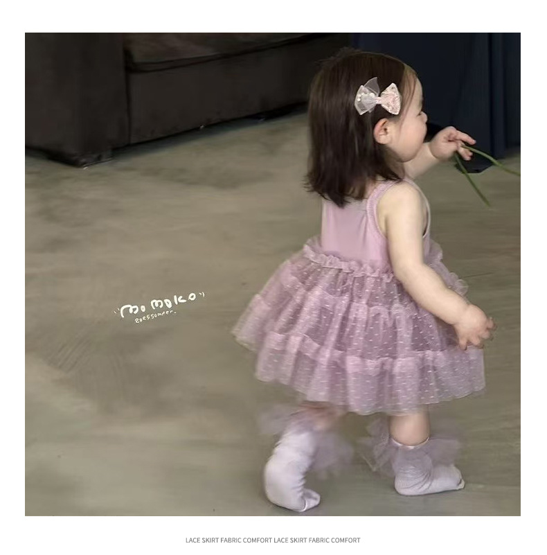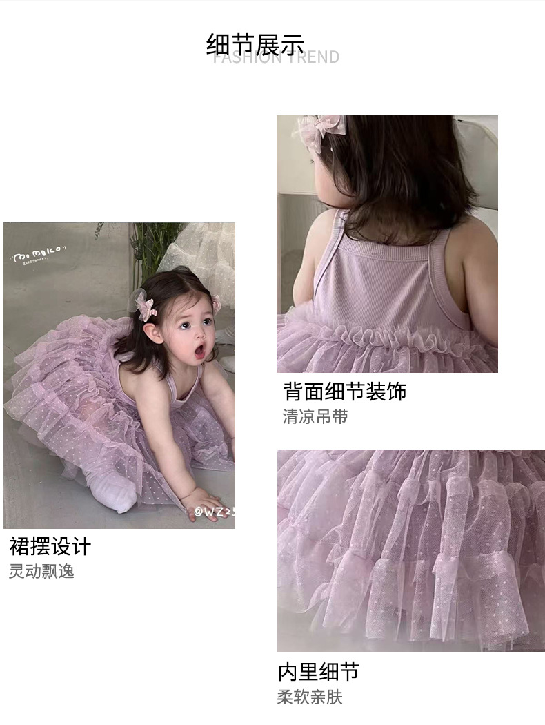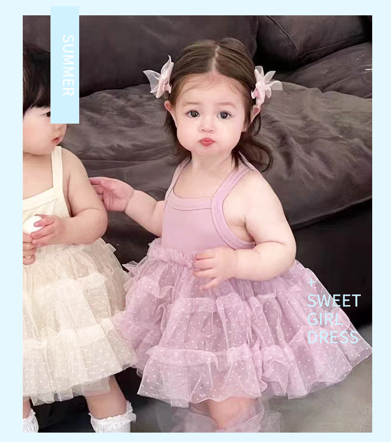 여자 여름 서스펜더 스커트, 달콤한 유치원 아기 푹신한 공주 거즈 스커트, 세련된 어린이 한 살짜리 선물 드레스스토어 가기